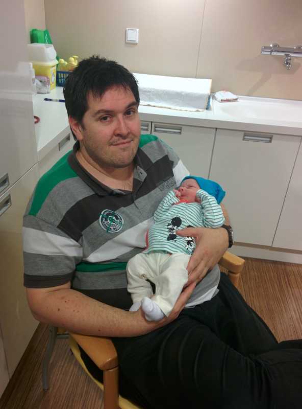 15 mei: Het grote nieuws is eindelijk daar: vandaag is onze zoon Youp geboren. Al rond de middag voelde Jantine de weeën opkomen en kreeg Erik dus een telefoontje. Niet veel later kwam ook de verloskundige thuis polshoogte nemen. In eerste instantie bleek het nog wat vroeg om er wat van te zeggen en dus zouden ze een uurtje later terugkomen. Al binnen dit uurtje werden de weeën heviger en zat er geen tijd meer tussen. Er was dus geen pauze meer tussen de weeën hetgeen erg vermoeiend is. De verloskundige kwam dus weer terug en besloot om toch maar richting Ikazia te gaan. Dit was nog best lastig omdat Jantine continu weeën beleefde met pieken om de drie minuten. Eenmaal in Ikazia bleek al snel dat Jantine een zogenaamde weeënstorm had, er was geen rustpunt tussen de weeën en dus moest er een ruggeprik worden gezet om de pijn te verzachten omdat het anders niet vol te houden zou zijn. De ruggeprik bleek nog niet zo eenvoudig te zetten tussen de wervels omdat voorover bukken met een bolle buik nu eenmaal moeilijk gaat. Uiteindelijk is dat wel gelukt gelukkig.