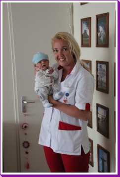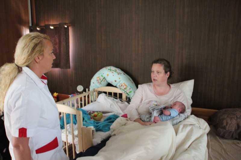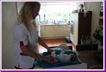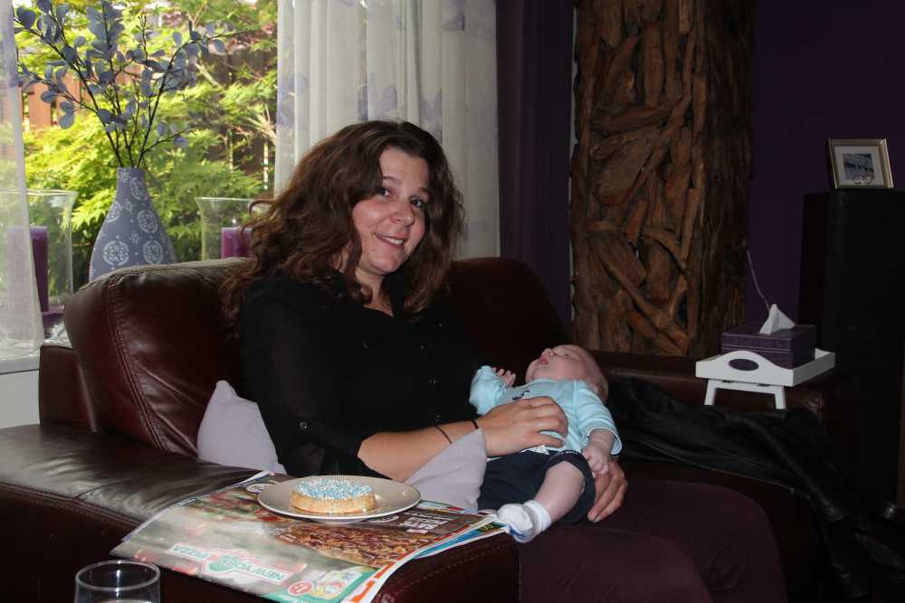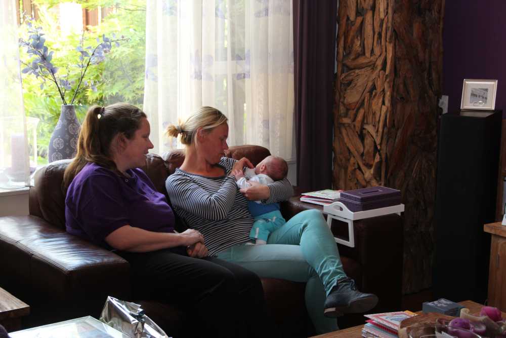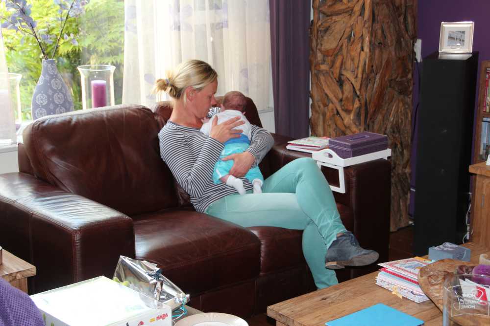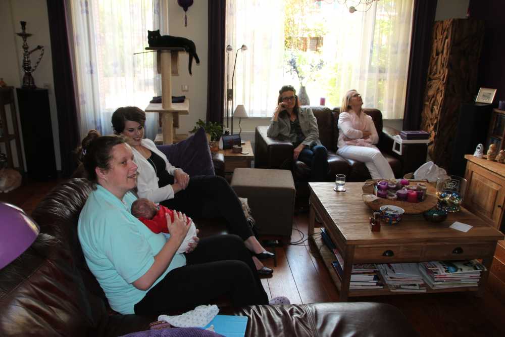 Aan het begin van de middag kwam Carla Bastemeijer op kraambezoek. Zij heeft een praktijk voor fysiotherapie en zit op dezelfde verdieping als Jantine in het gezondheidscentrum in Rhoon.