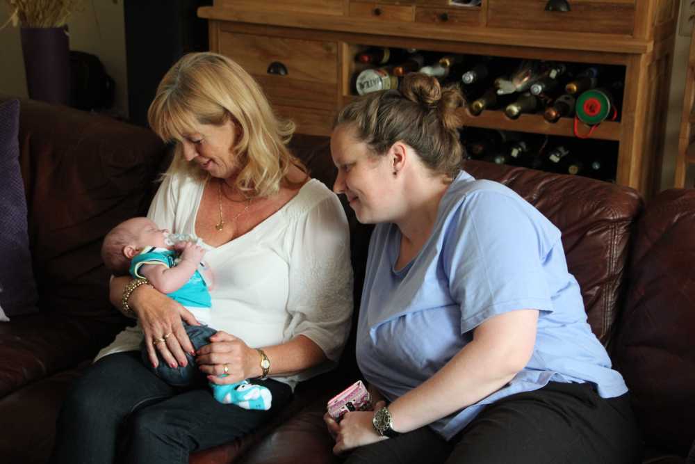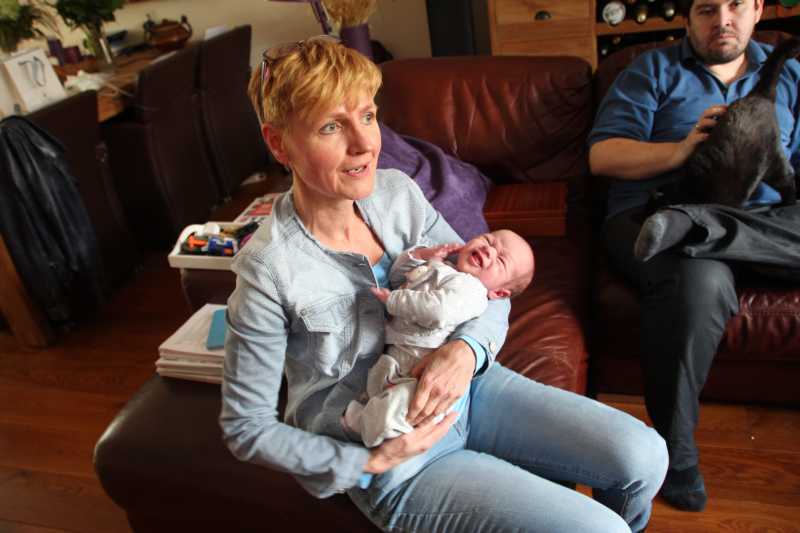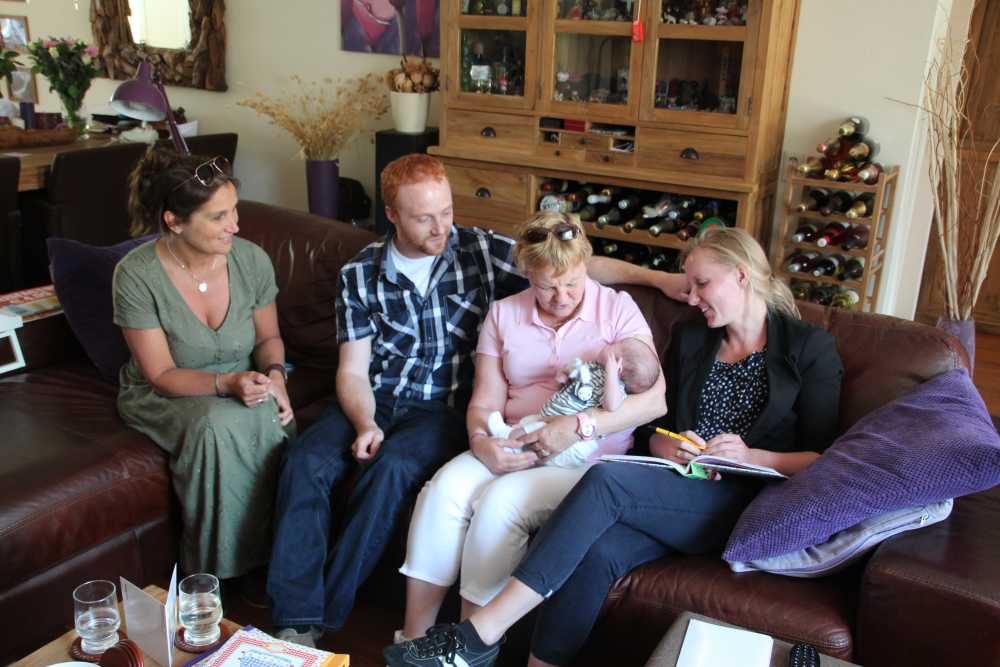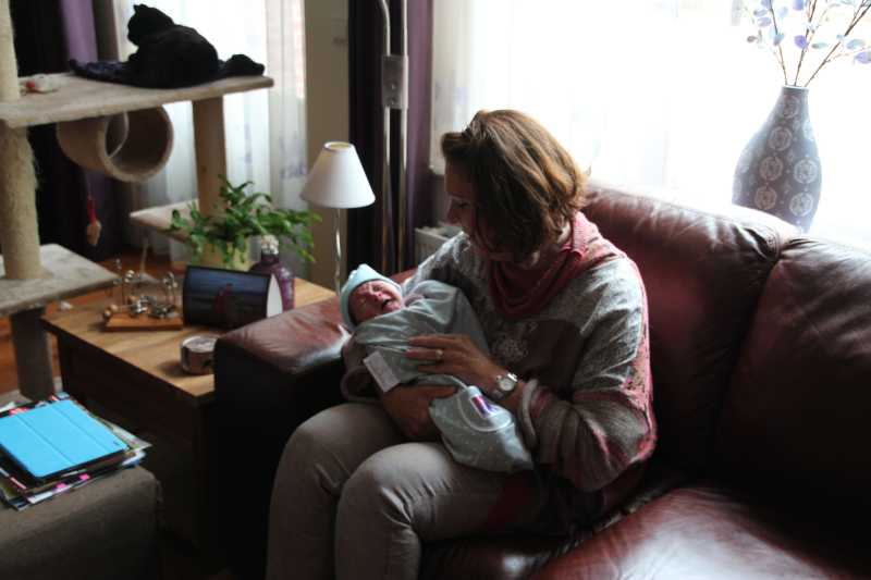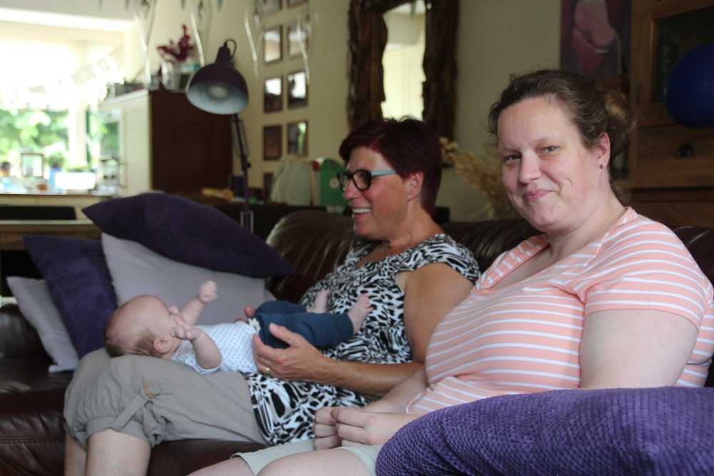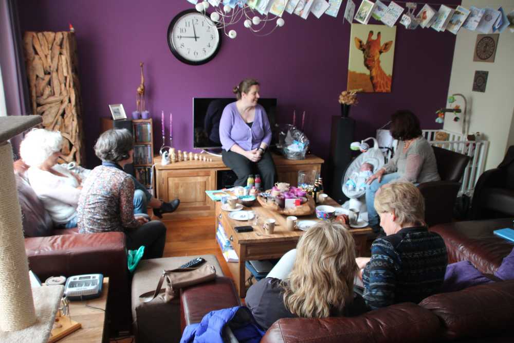 Aan het begin van de middag kwam Carla Bastemeijer op kraambezoek. Zij heeft een praktijk voor fysiotherapie en zit op dezelfde verdieping als Jantine in het gezondheidscentrum in Rhoon.
