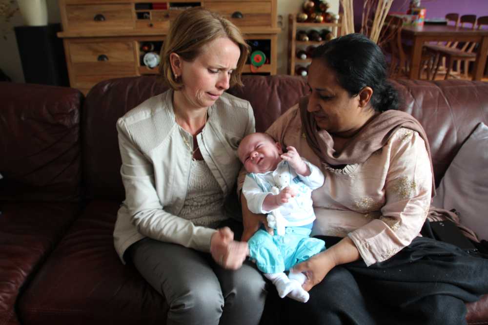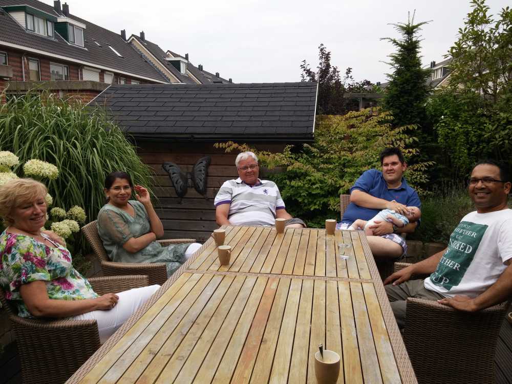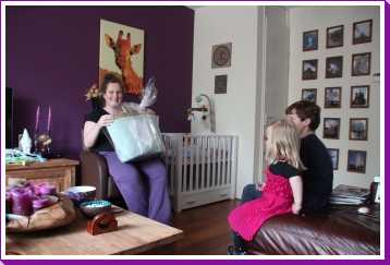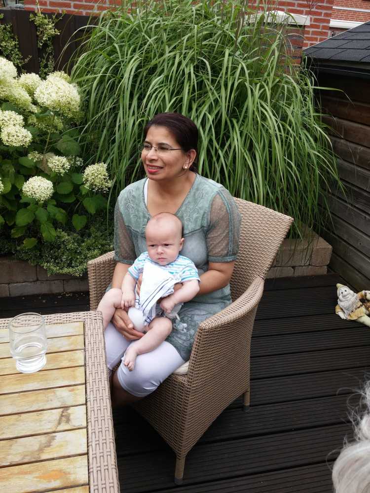 9 juni: Vanmiddag kwamen Edith en Nawila langs op kraamvisite, beiden van de huisartsenpost Rotterdam Zuid.