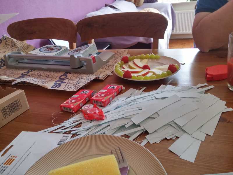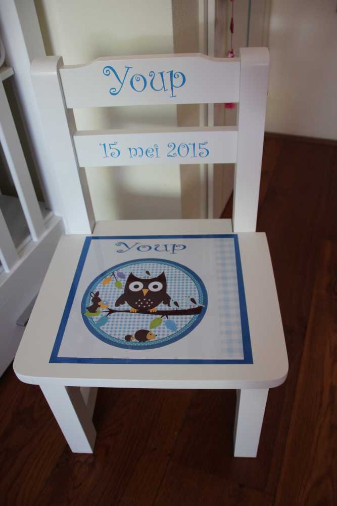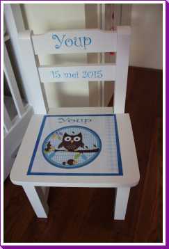 5 juni: Vandaag kwam deel twee van de praktijk langs. Sigrid, Jelle, Ingrid en Tamara kwamen vandaag en hadden een houten stoeltje meegebracht met daarop het geboortekaartje afgedrukt.