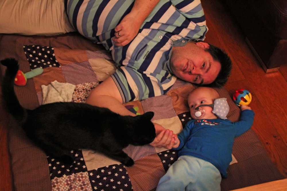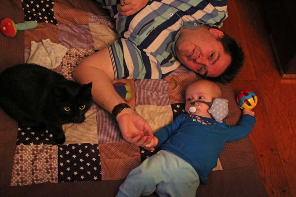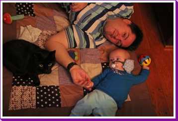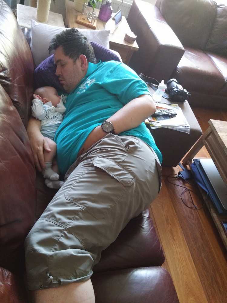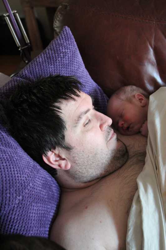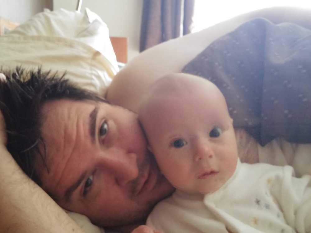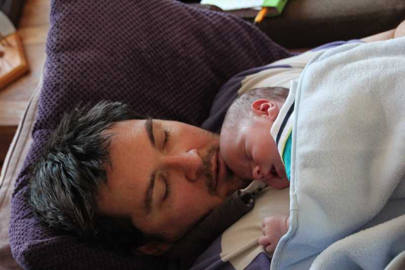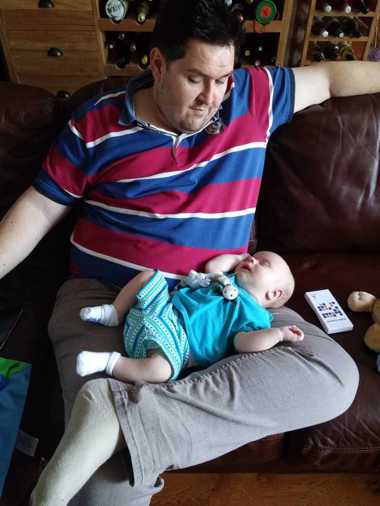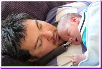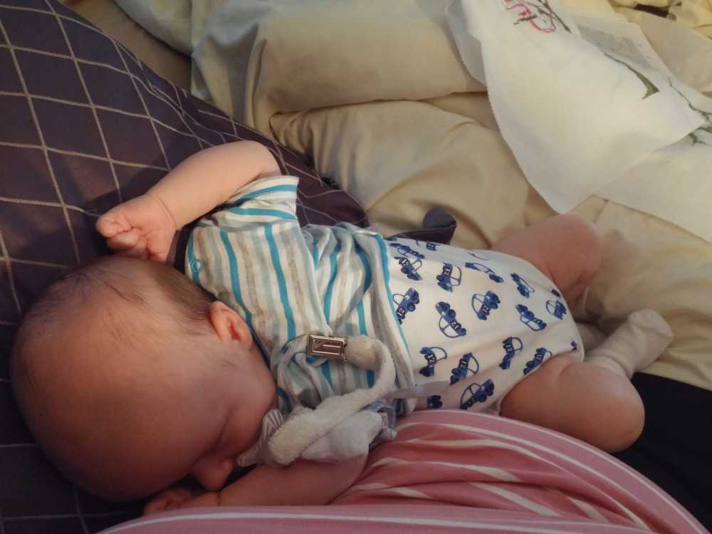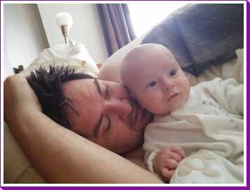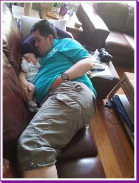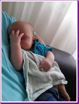 12 juli: Een lekker dagje op bed en slapen in papa's armen......