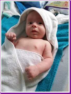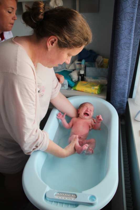 23 mei: Vandaag stond er weer een badje op het programma. Ditmaal mocht Erik dan Youp in bad doen. Verder kwamen aan het einde van de middag nog de verloskundige langs en aansluitend de buren Arnold, Korrie en de kinderen Sam en Anne.