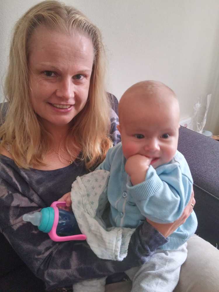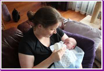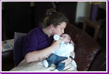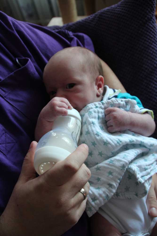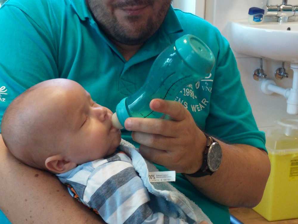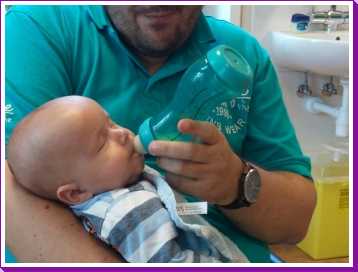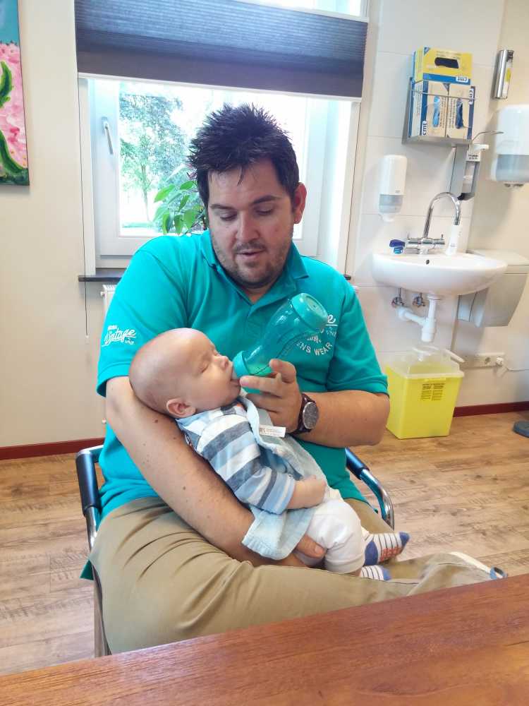4 juni: Vandaag kwamen Frans Boute en Florence Geers van de beleidscommissie van de huisartsenpost R'dam Zuid op kraamvisite. Kort daarna ging er weer een fles melk in en werd er weer tegen de slaap gevochten.....