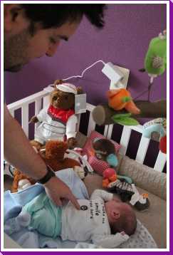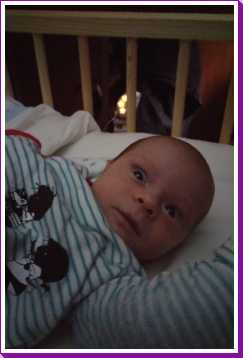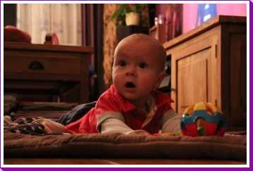 24 september: 's-avonds vind ik dat ik rond een uur of zeven altijd even van mij moet laten horen zodat papa en mama nog wel weten dat ik er echt ben. Met papa heb ik vandaag weer een nieuw spelletje ontdekt, het heet 'hop paardje hop' en schijnbaar ben ik dan het paard. Wat een paard is weet ik verder niet, maar ik weet wel dat ik dan lekker op en neer ga......