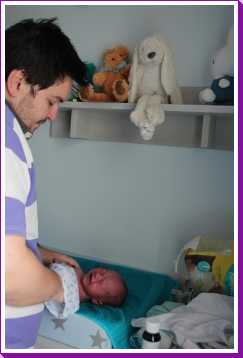 16 mei: Vanochtend mochten e na een nachtje ziekenhuis allemaal naar huis. Thuis duurde het niet lang voordat kraamhulp Mirjam op de stoep stond. Vervolgens hebben we met haar e.e.a. doorgesproken en bekeken, het is allemaal nog erg nieuw. Aan het einde van de middag zijn de ouders van Jantine op kraambezoek geweest. Kort nadat die weg waren zijn ook Xander, Priscilla en de kinderen op kraambezoek geweest. Deze avond zijn we al lekker vroeg naar bed gegaan want het nachtje ziekenhuis was niet veel soeps.