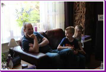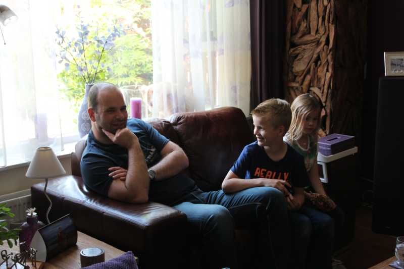 17 juni: Nog even een fotootje van een naakte Youp en daarna ontspannen op de arm bij Erik op de bank......