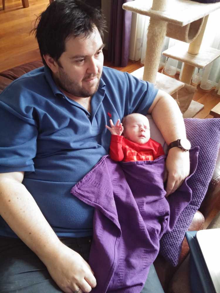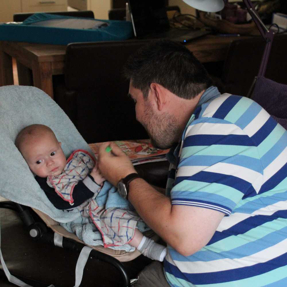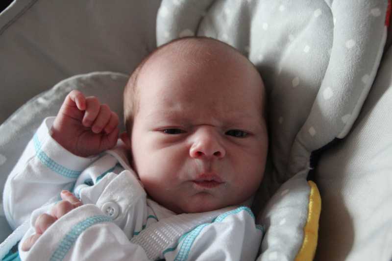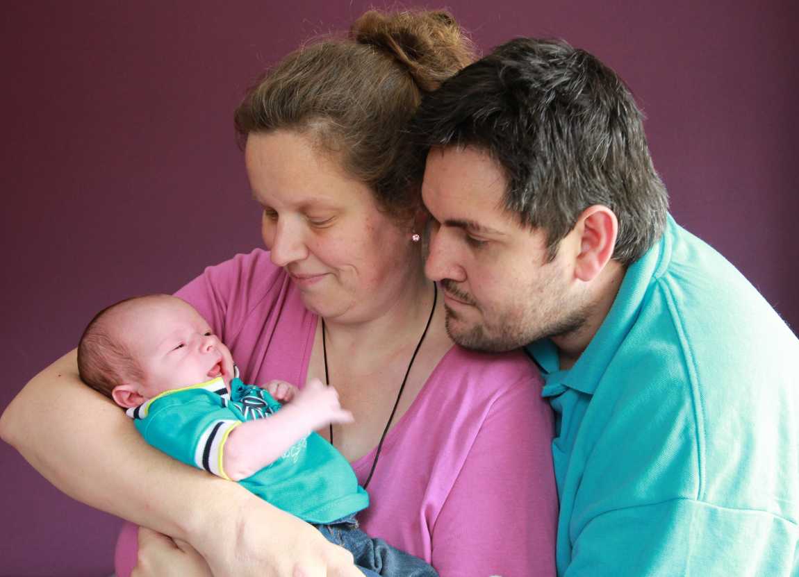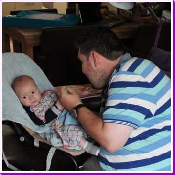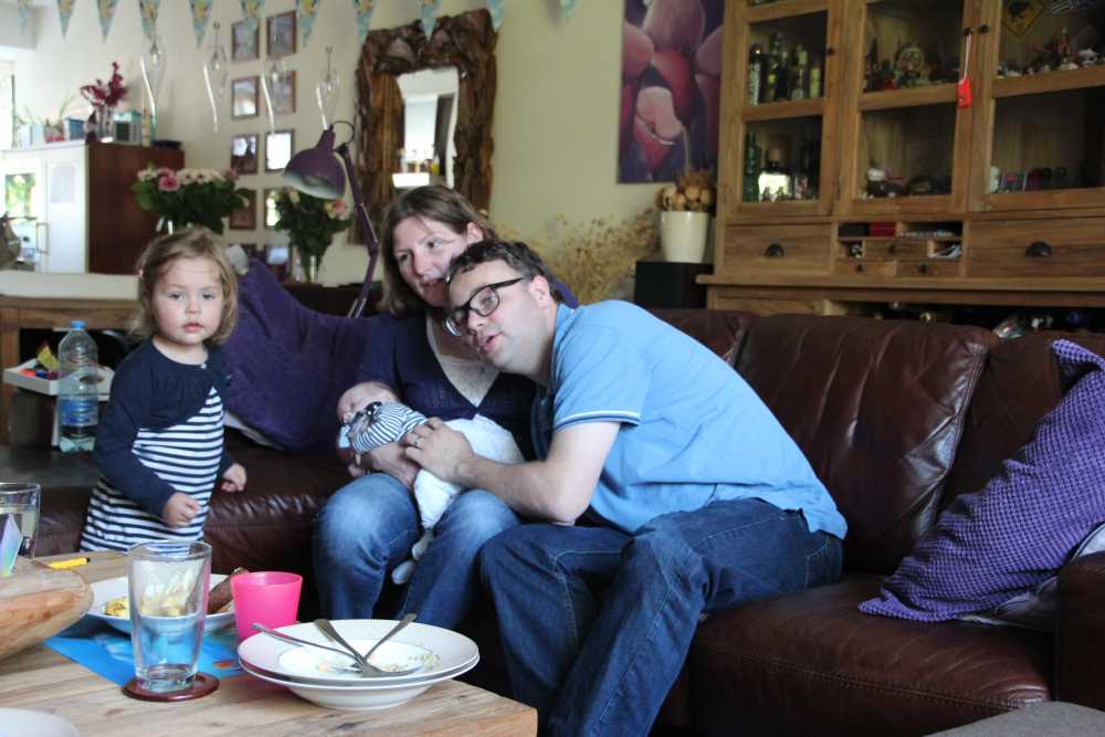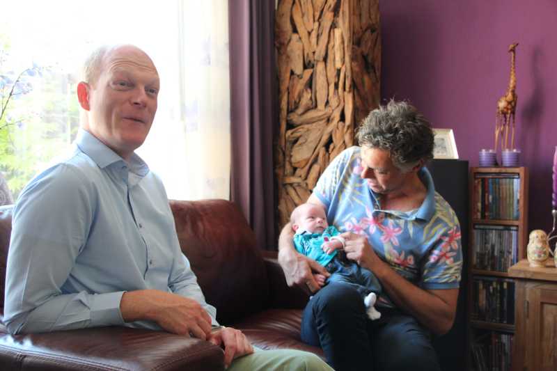 30 mei: Aan het einde van de ochtend kwamen Jeffrey & Janine samen met Bram op kraamvisite. Jeffrey is een neef van Jantine.