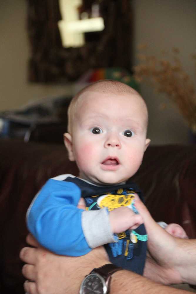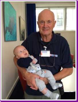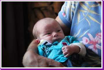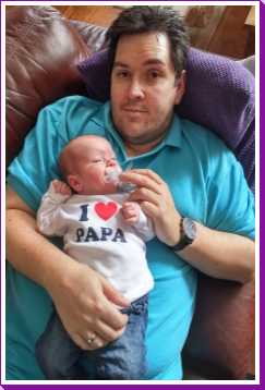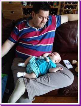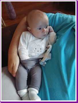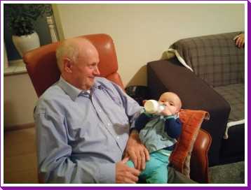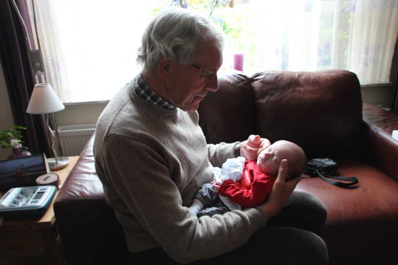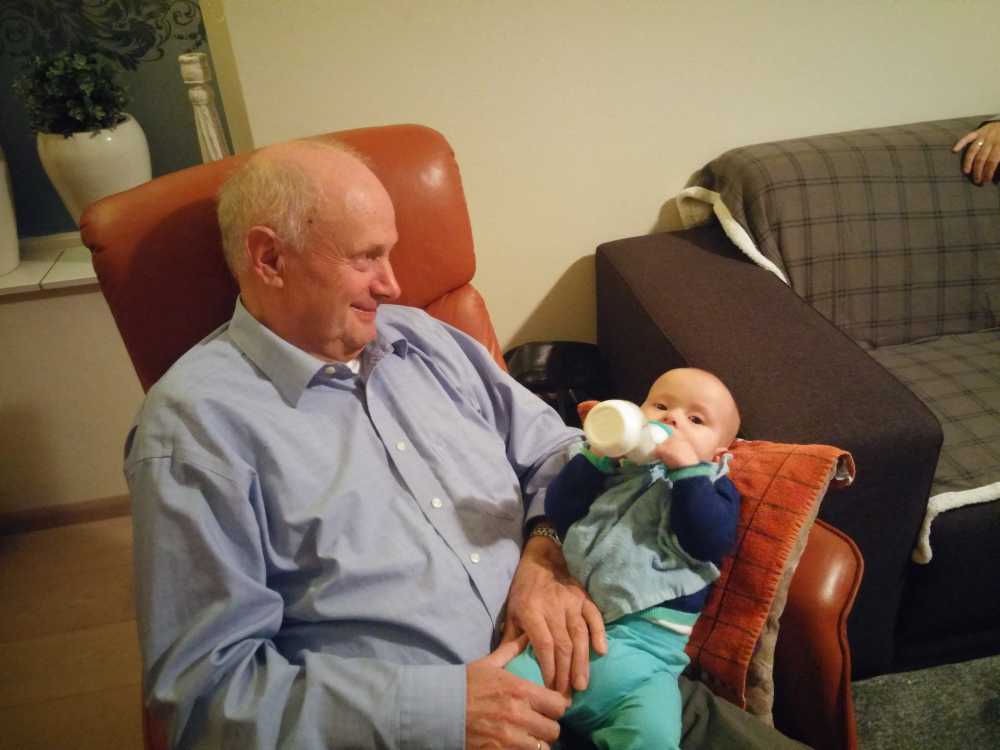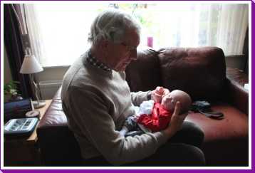 30 oktober: Ik zit even lekker bij opa op schoot mijn fles te drinken.....
