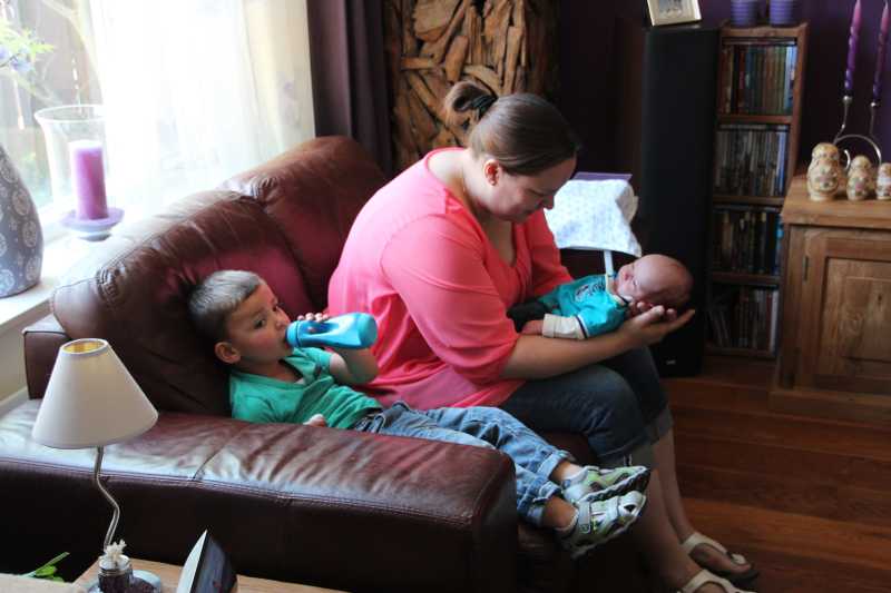 22 mei: Omdat Erik vandaag aan het werk was ging Jantine samen met kraamhulp Mirjam zelf maar even een fotoshoot maken....
