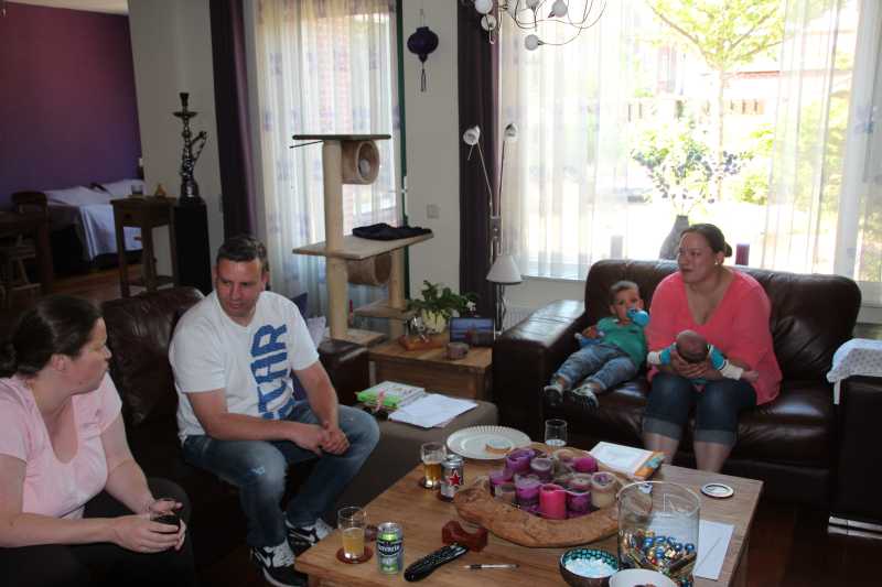 Aan het einde van de middag kwamen Hanz, Hester, Lonneke & Doreen ook langs voor een kraambezoek. Helaas moest Erik aansluitend daar aan richting Heerjansdam omdat hij bardienst had bij de tennisvereniging. Gelukkig kon hij daar om 21.00 naar huis zodat het toch niet een hele lange avond werd.