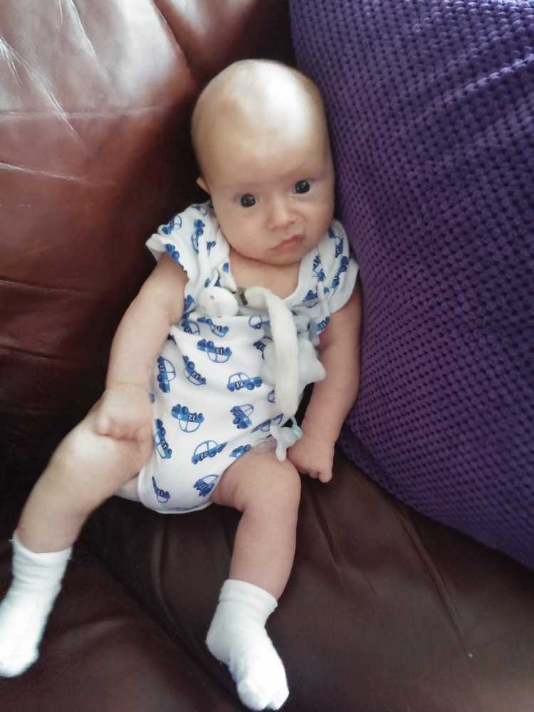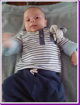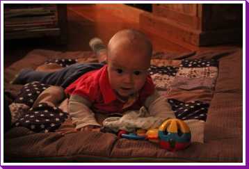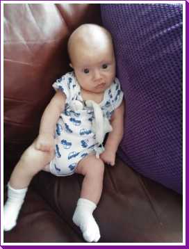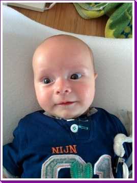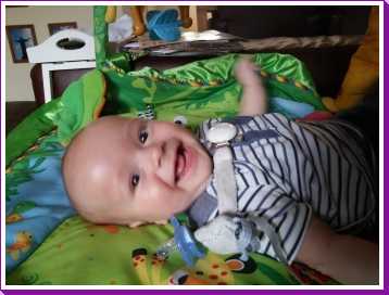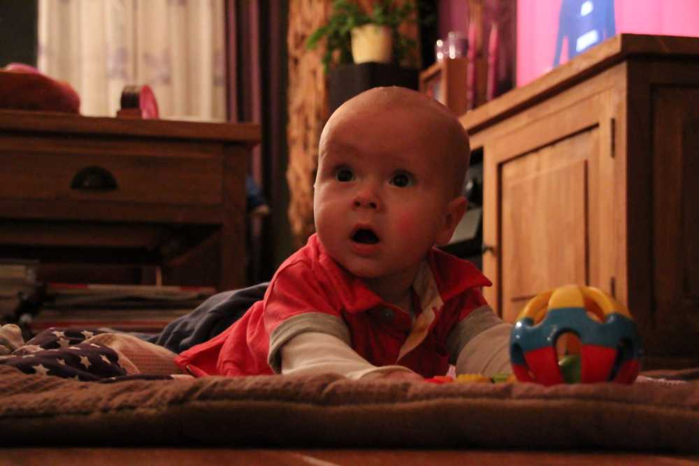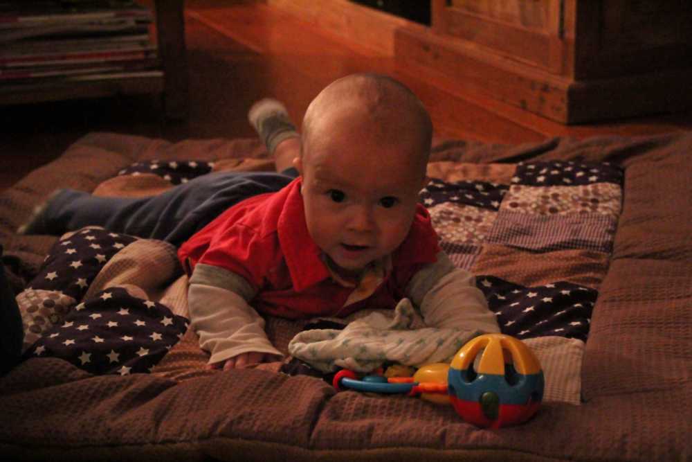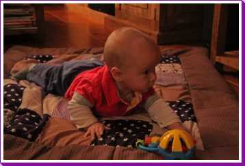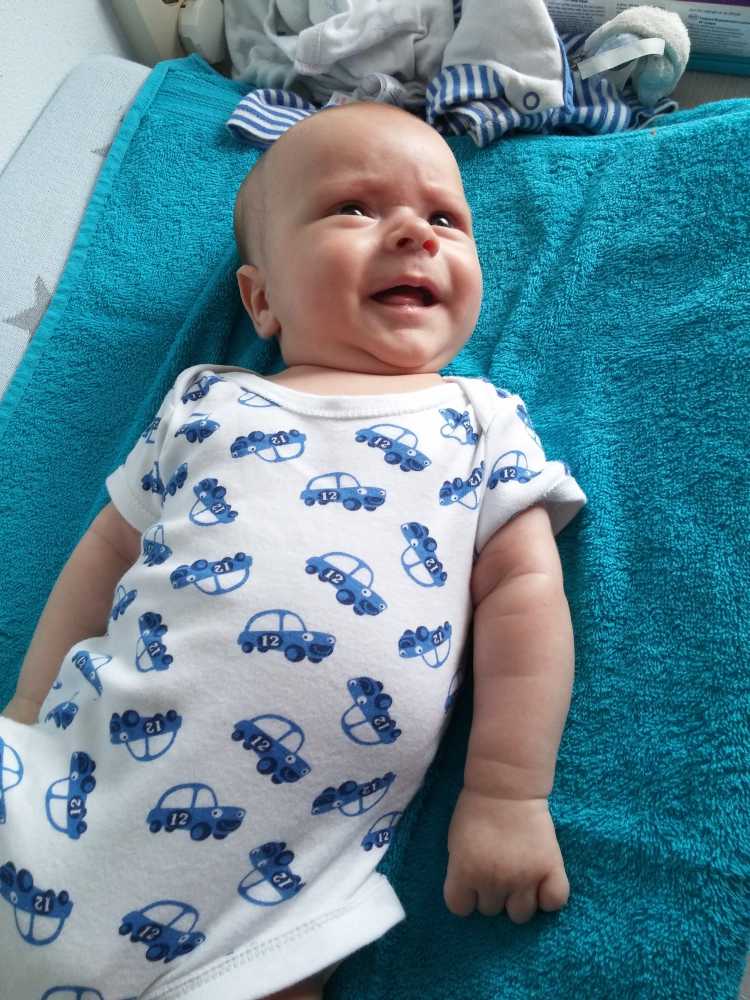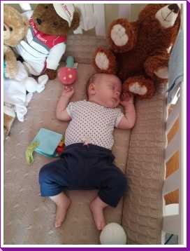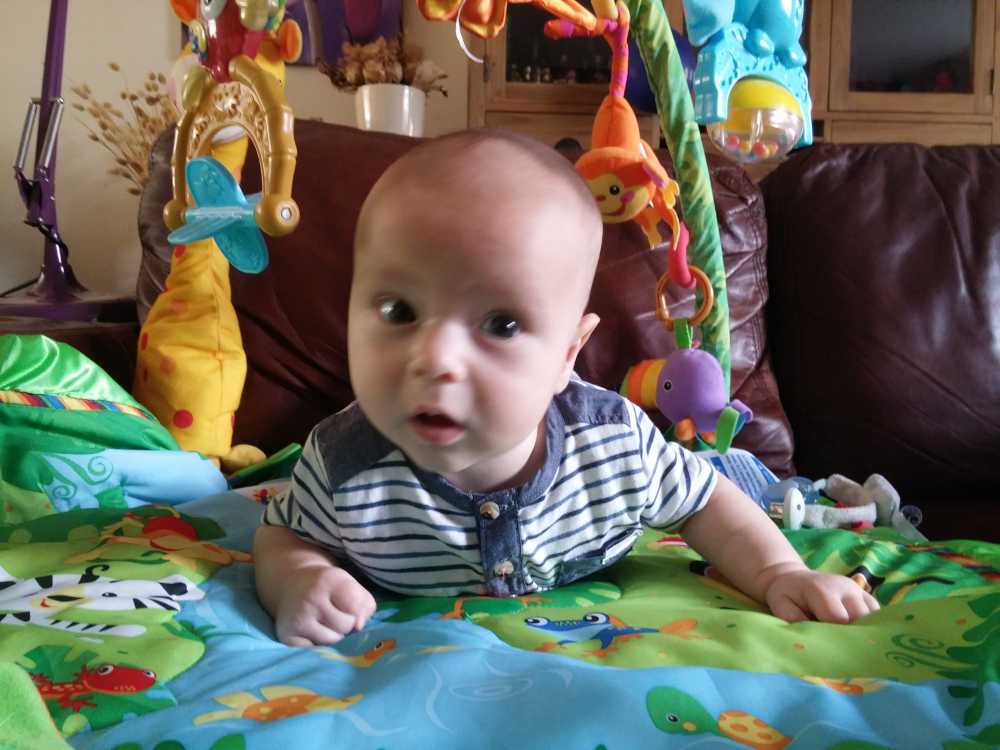1 september: Vanochtend ben ik met mama en oma bij Patricia Kleij geweest. Eenmaal thuis daarvan heb ik op mijn buik liggen oefenen met draaien op het speelkleed op de bank. Mama zat naast me dus er kon niets gebeuren.