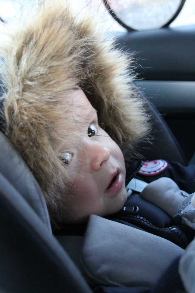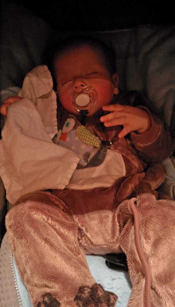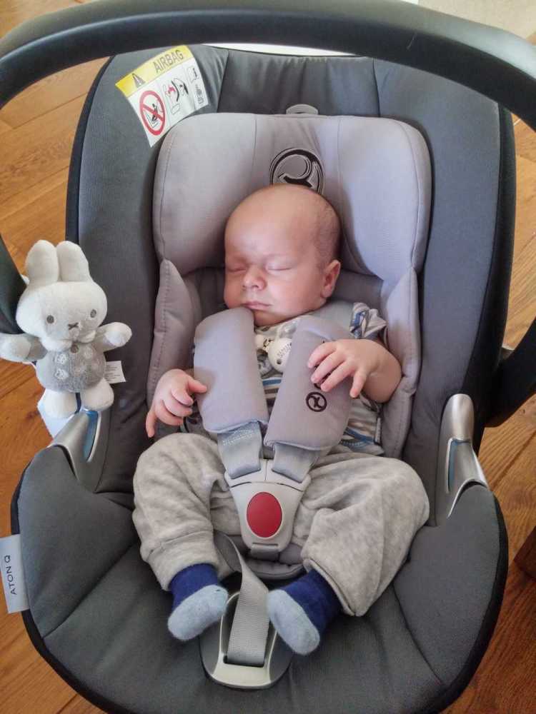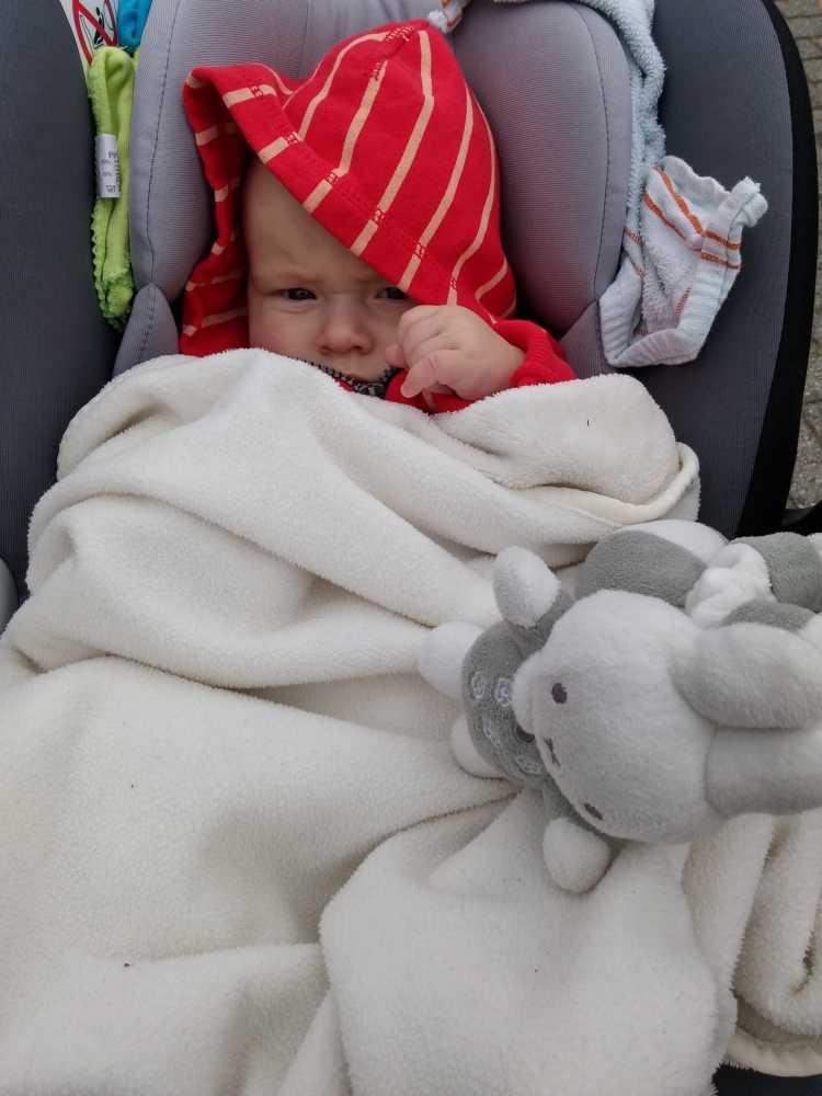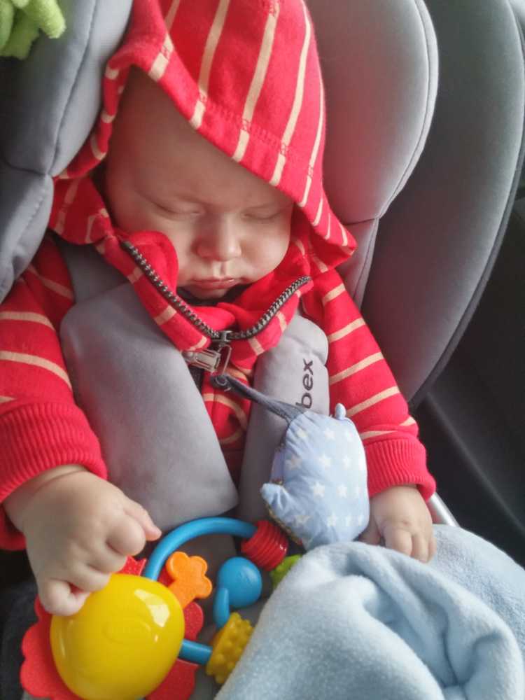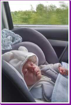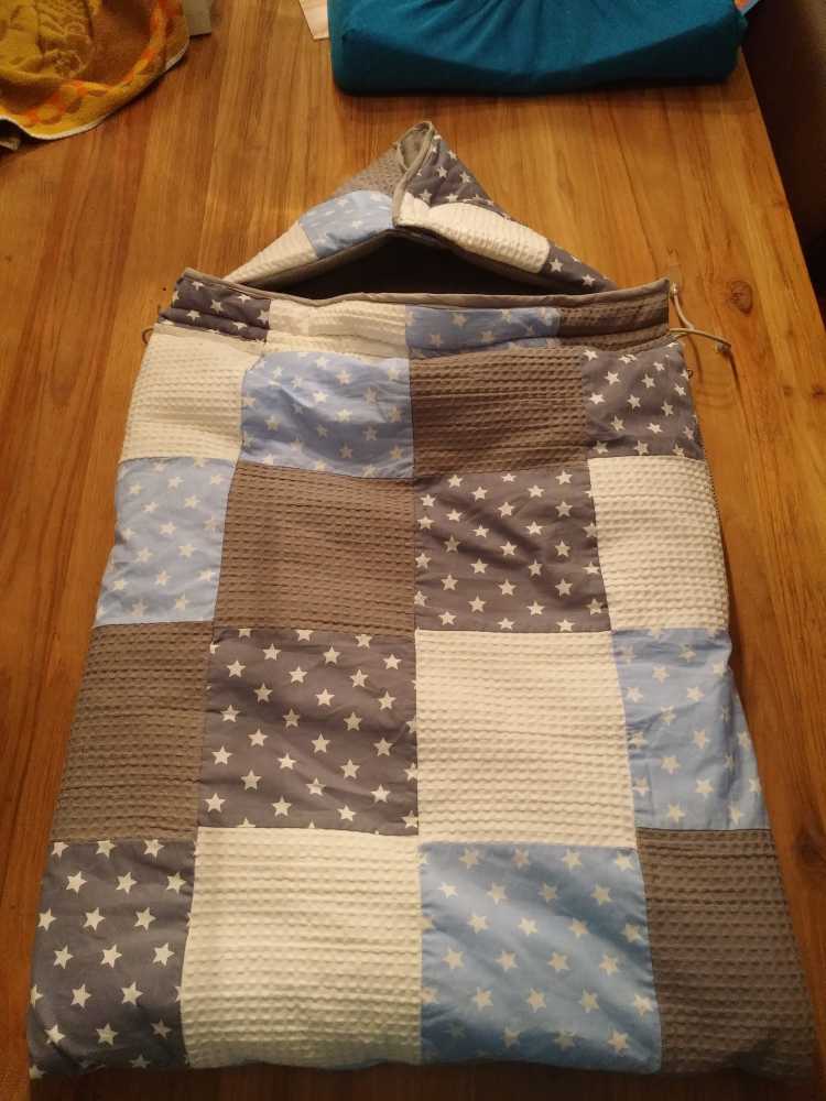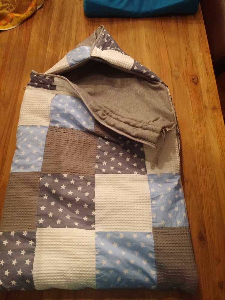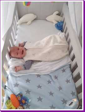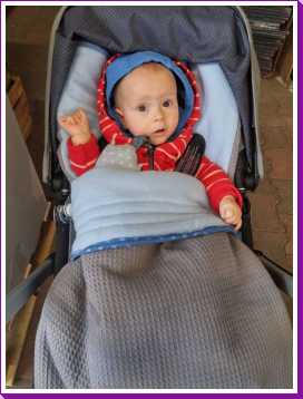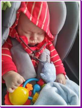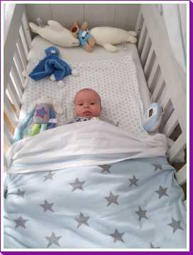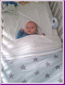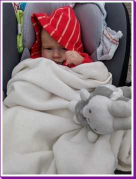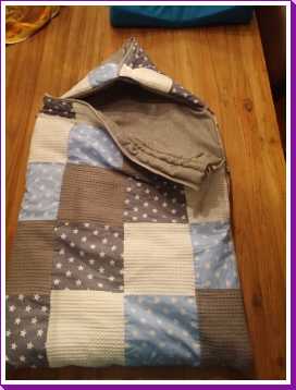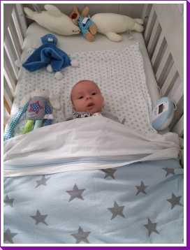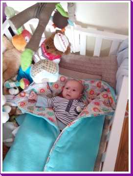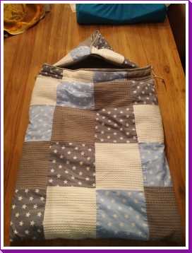 Toen ik 's-avonds eenmaal op bed lag heeft mama mijn nieuwe slaapzak voor in de autostoel afgemaakt zodat ik ook komende winter heerlijk warm vervoerd kan worden.