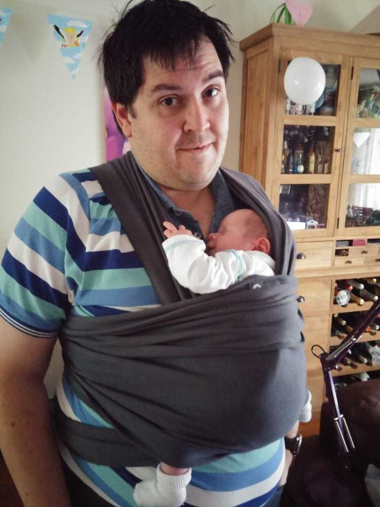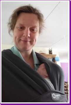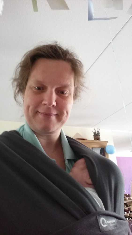 Aan het begin van de middag zijn we naar Alexandrium gereden om daar naar de Baby Dump te gaan. Hier hebben we een Babylonia Tricot Slen draagdoek gekocht. Volgens de dames in Jantine haar zwangerschapsclubje zou dit erg makkelijk zijn om de kleine in mee te dragen. Toegegeven, het zit best makkelijk zo......