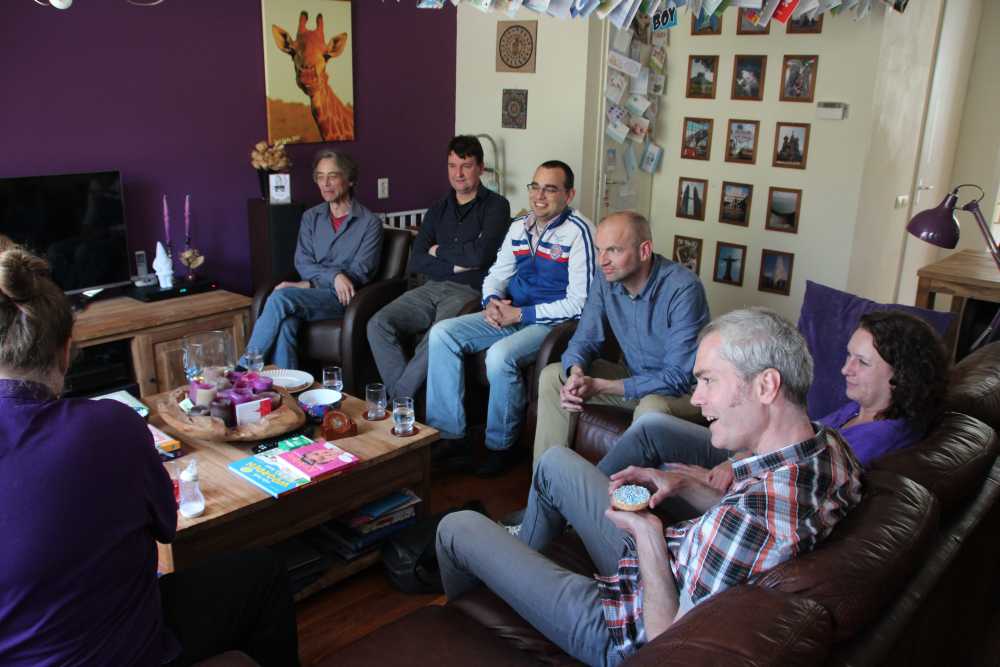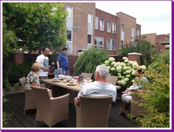 3 juni: Vanmiddag kwamen de collega's van Marge Architecten op kraambezoek. Zoals Margianen betaamd was het merendeel ruim te laat en kwam een derde niet opdagen (altijd dezelfde). Maar dat is niet erg, want het huis was zo al meer dan vol zat.
