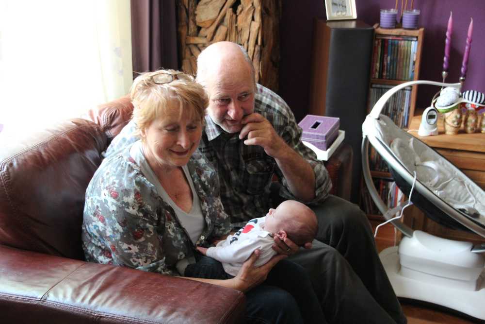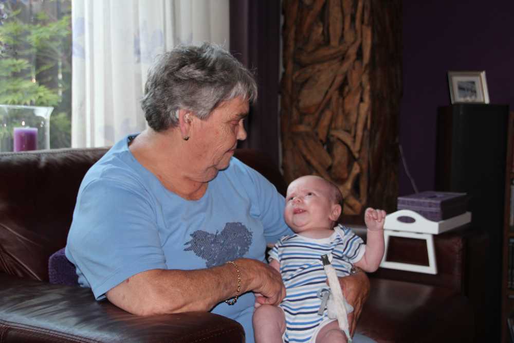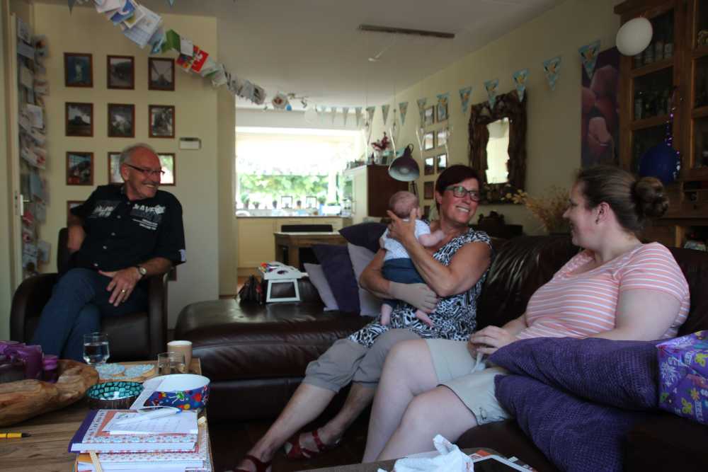 5 juli: Vanmiddag zijn Frans & Frieda helemaal uit Kerkrade komen rijden om op kraambezoek te komen.