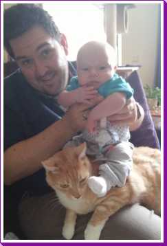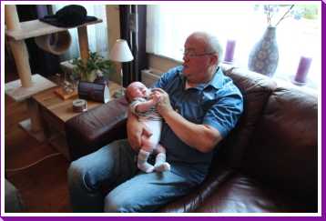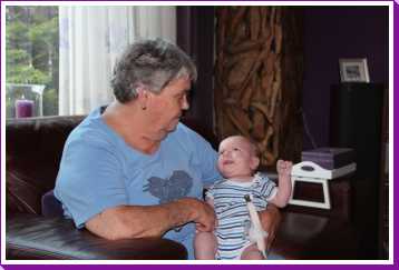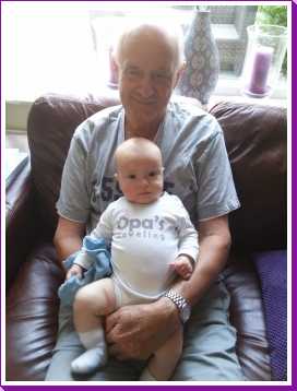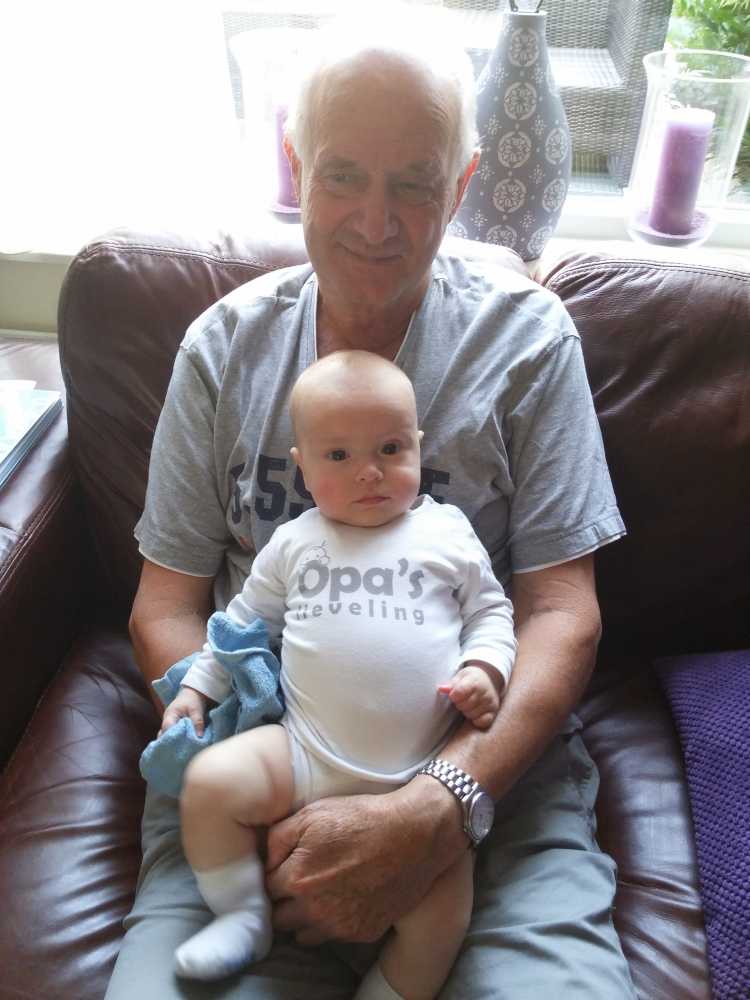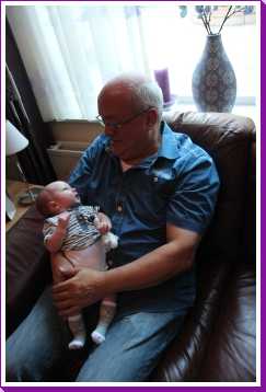8 augustus: We zijn vanmiddag even bij opa en oma op bezoek geweest omdat ook tante Marlou, oom Ruud en mijn neefje Jort en nichtje Puck daar waren om opa te bezoeken na zijn ongeluk. Zo mocht ik even bij allen op schoot voor de foto.