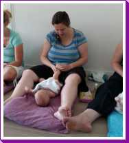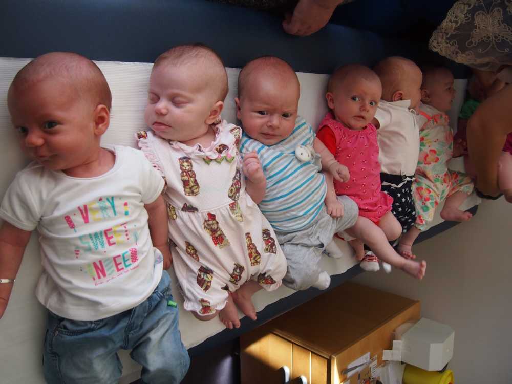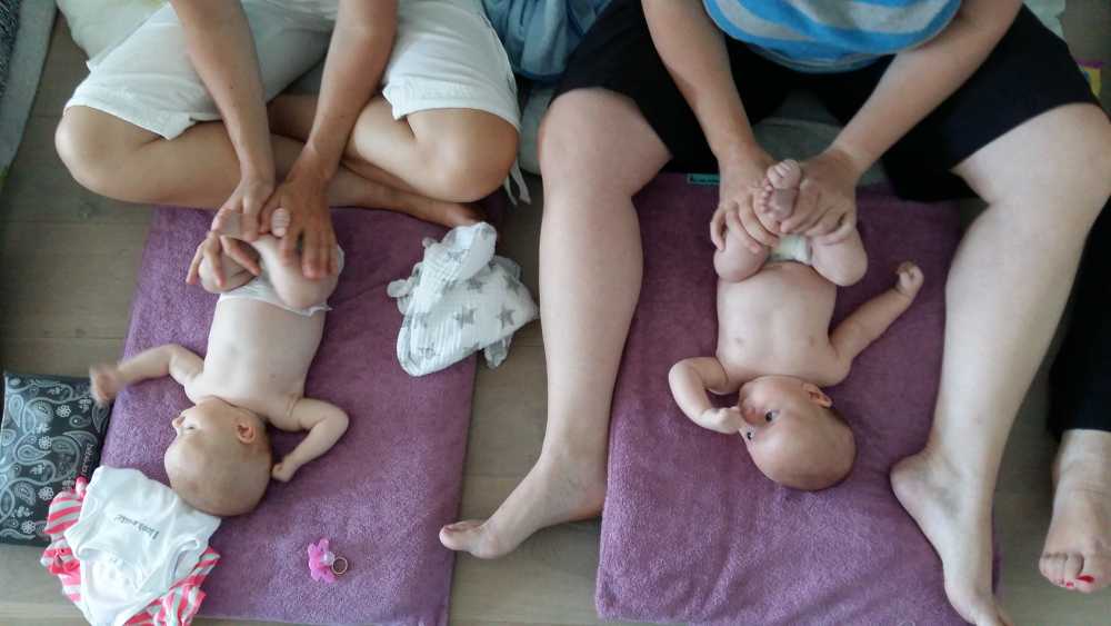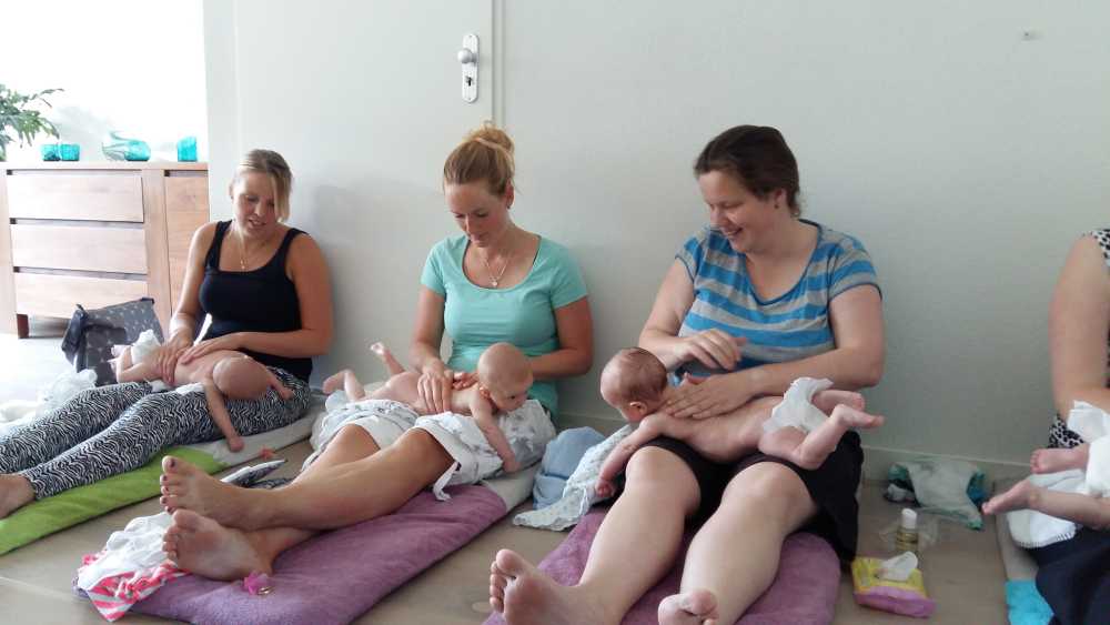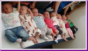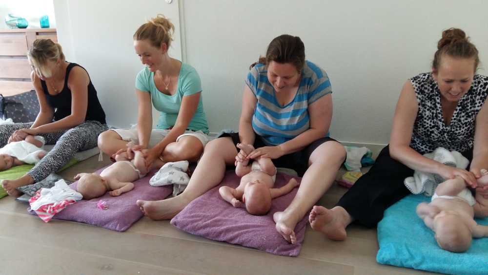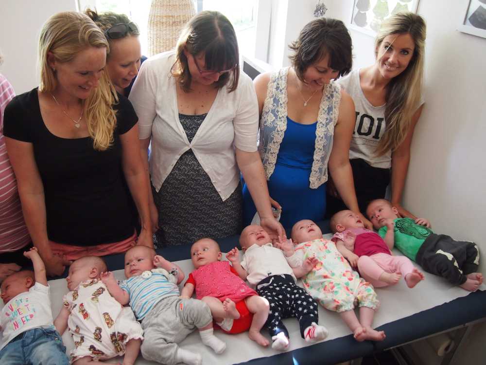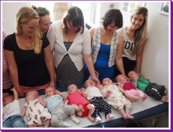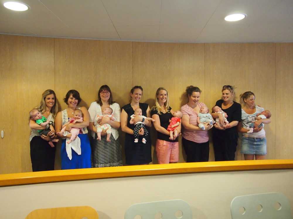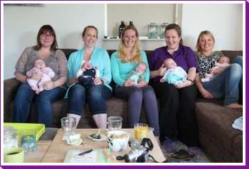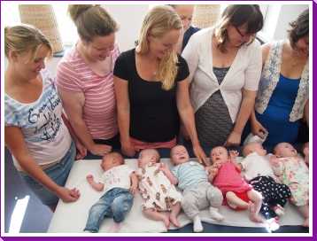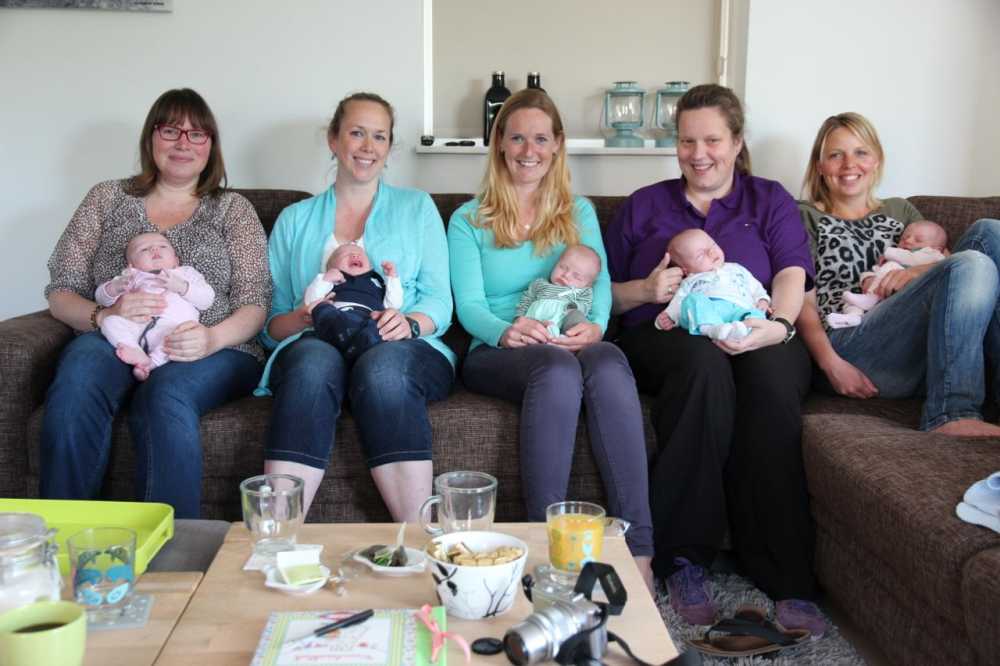 30 juni: Vandaag had Jantine met de dames van de zwangerschapsclub afgesproken om met z'n allen samen te komen met alle baby's erbij. Het werd dus een gezellige boel waarbij het ene huiltje weer werd overgenomen door het andere huiltje. Uiteindelijk werd het een hele fotorapportage met z'n allen naast elkaar liggend en met alle mam's met kind op een rijtje.