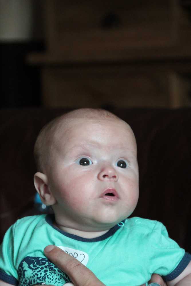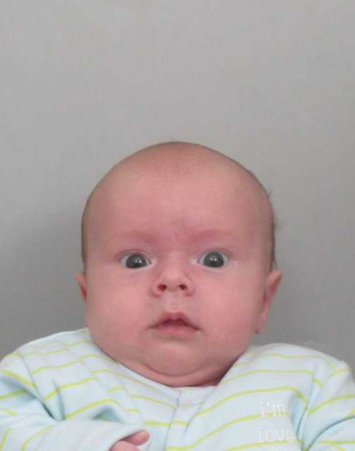 4 augustus: Vanochtend is Marjan Simons - de Penning op kraamvisite geweest. Aan het begin van de middag kwam ook Marianne Hoogendam nog op kraamvisite. Daarna ben ik mijn verbaasde blik gaan oefenen, is nog best moeilijk......