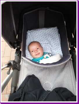9 juli: Vandaag heb ik lekker in mijn nieuwe box slaapzak gelegen, ben ik met mama bloemetjes gaan kopen en heb ik wat liggen lachen op mijn aankleedkussen.