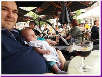 2 augustus: Vanmiddag zijn we even naar 's-Hertogenbosch geweest om daar lekker een terrasje te pakken en nieuwe grotere drinkflessen voor mij te kopen. Daarna zijn we op kraamvisite geweest bij Sven & Marjolein in Uden. Ook hun pasgeboren zoon heet Jens. We zijn daarna ook lekker blijven BBQ-en.