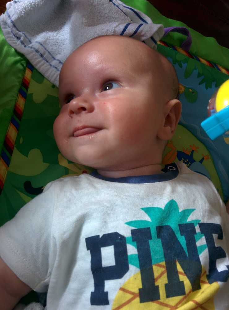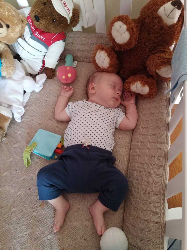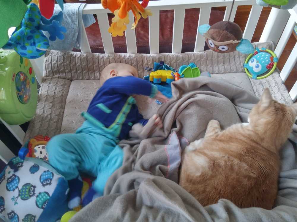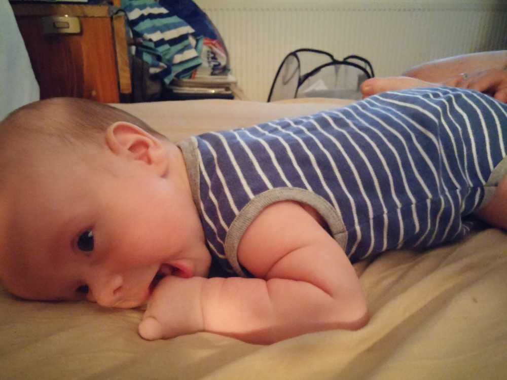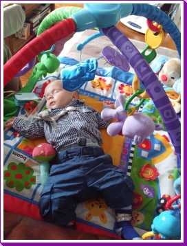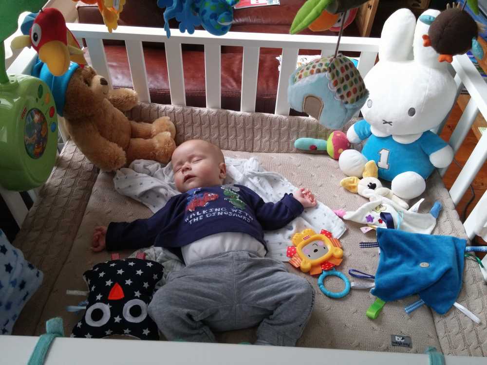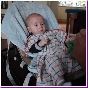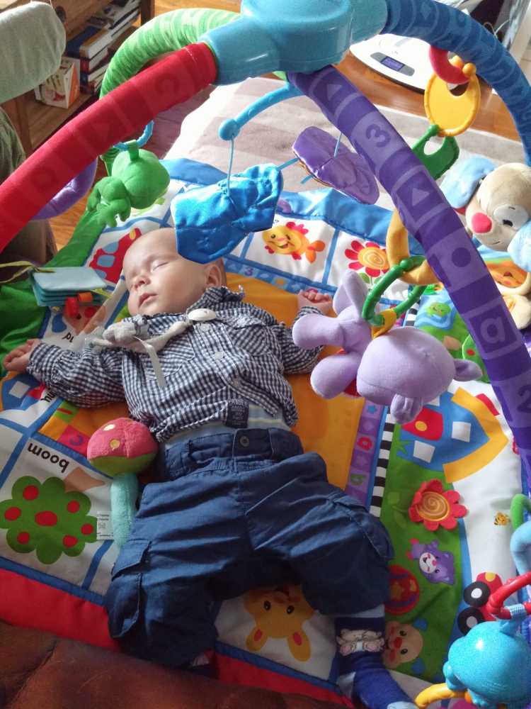 31 juli: Vanochtend is Judith op de koffie gekomen en kon ik met mijn vriendje samen op mijn speelkleed liggen. Met iemand naast mij kom ik niet aan slapen toe. Toen ze weer weg waren heb ik het snel maar ingehaald.