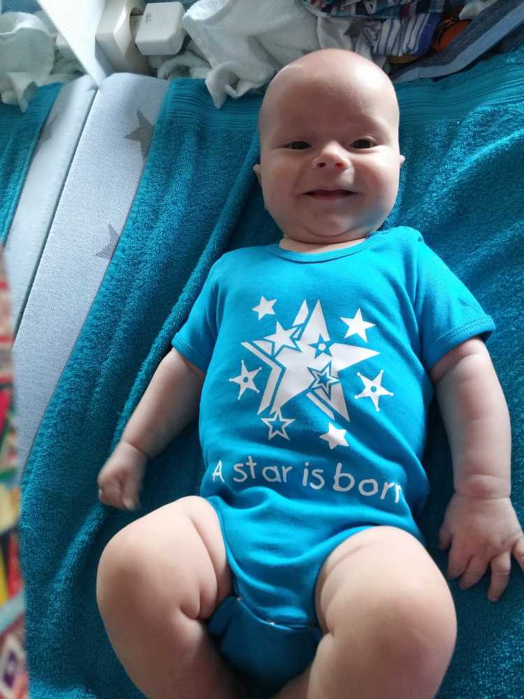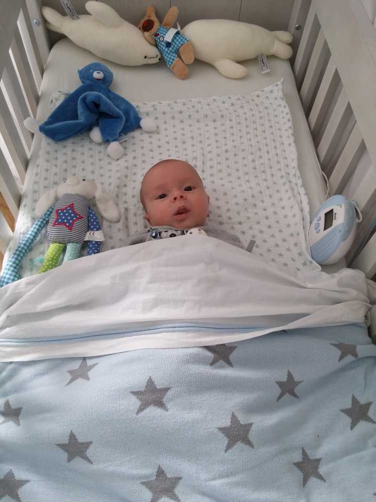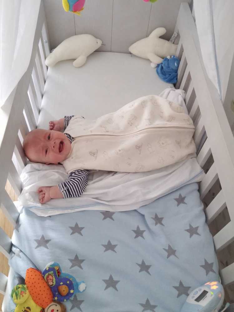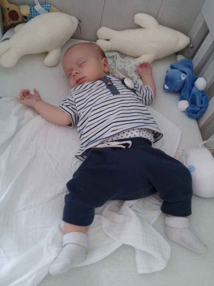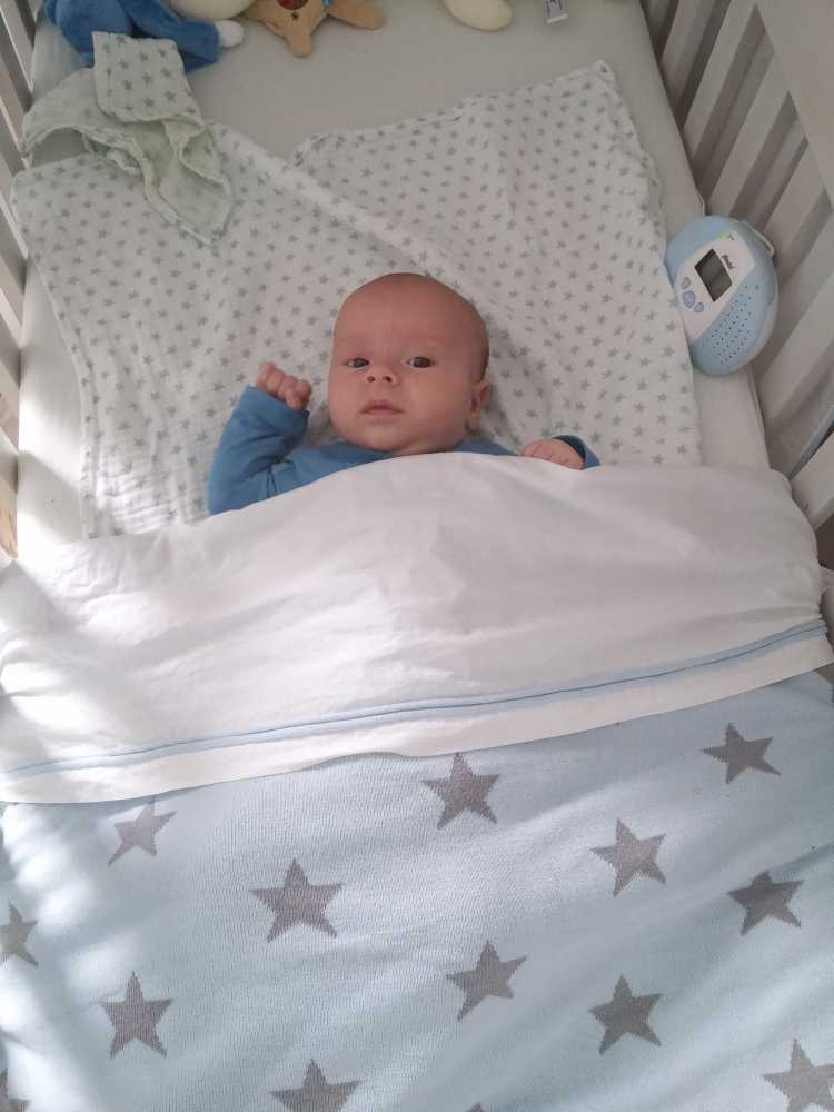 14 juli: Vandaag ben ik met mama naar de babymassage geweest. Ik vind dit nog niet echt leuk, het is met name slaapverwekkend. Thuis heb ik dus nog ff zitten chillen in mijn MamaRoo en ben daarna in m'n nieuwe box slaapzak gaan liggen.