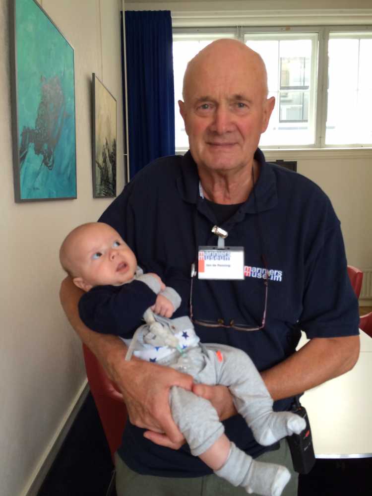 28 juli: Vandaag ben ik met mama naar het werk van opa geweest in het Mariniersmuseum. Ik heb even met opa rondgekeken en moest ook even op de foto met opa.