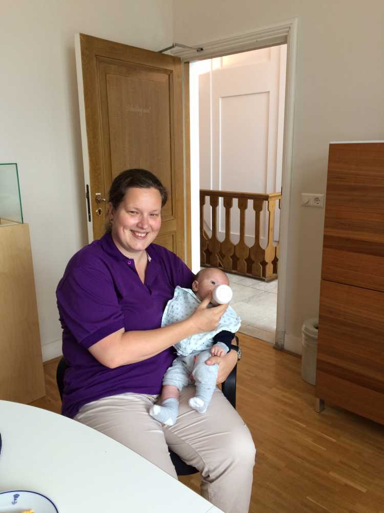 19 augustus: Papa is vandaag bij mama in de praktijk geweest en ik mocht lekker mee. Gelukkig hebben ze daar ook melk.