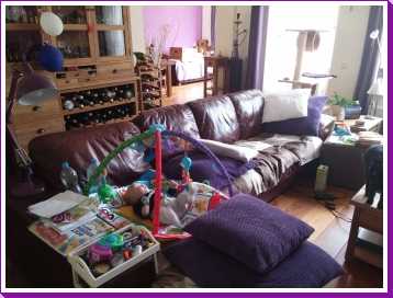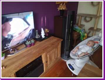 27 juli: Nu we weer thuis zijn kon ik na een rustig dagje in de box met mijn nieuwe mobiel met junglegeluiden 's-avonds lekker rusten en TV kijken op de bank.... Al Bundy style.....