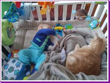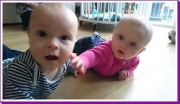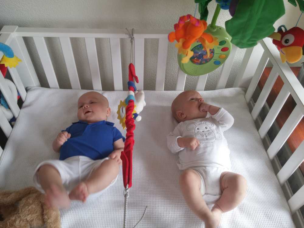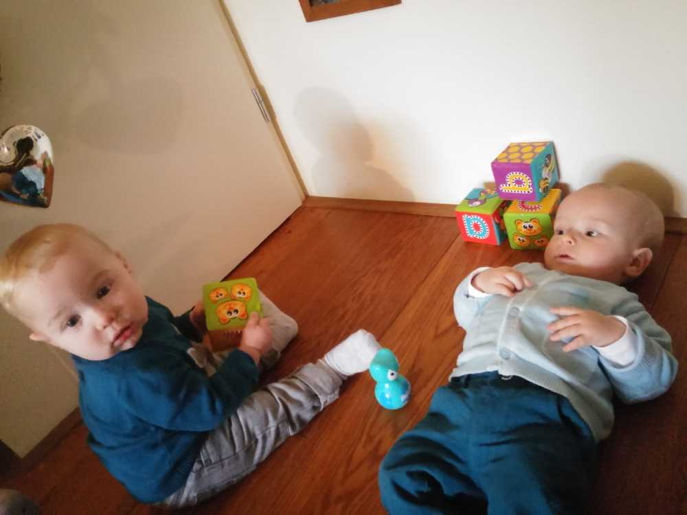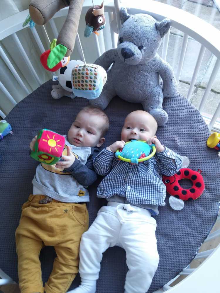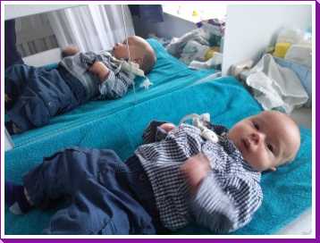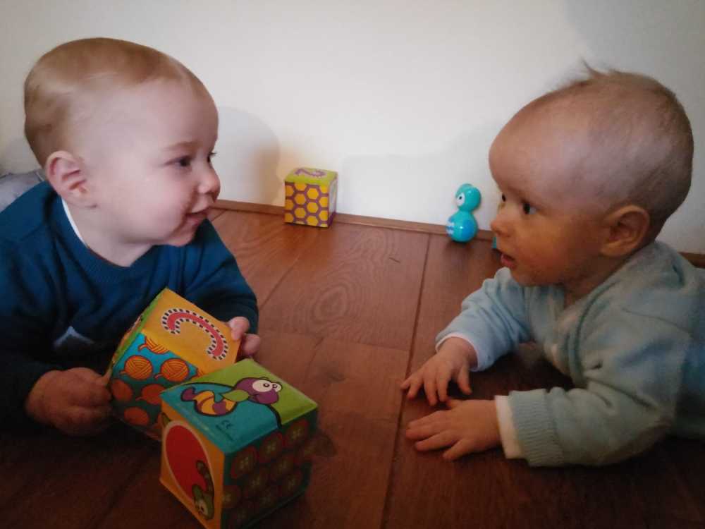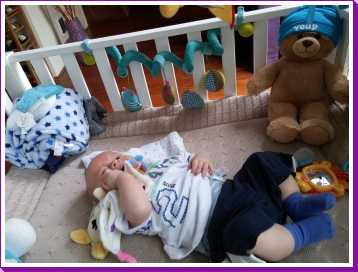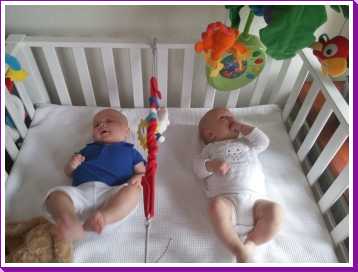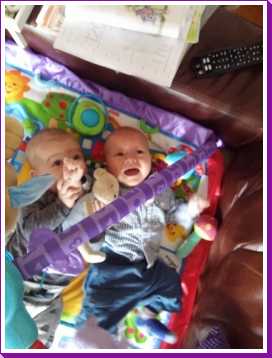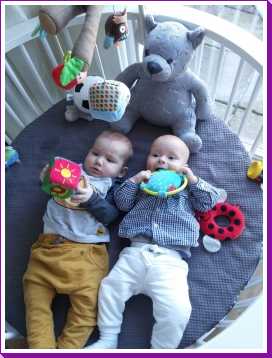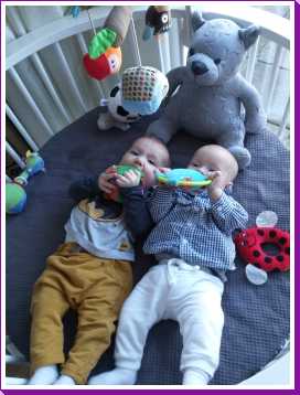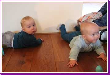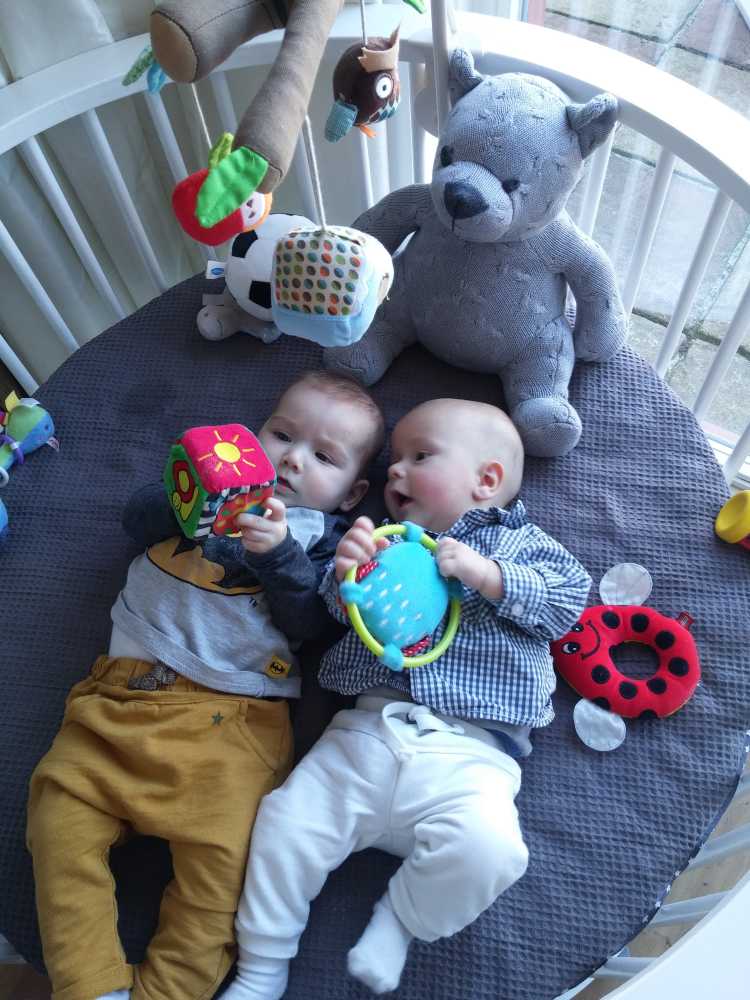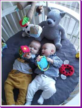 11 september: Vandaag met ik met mama bij Judith en Liam geweest lunchen. Ik mocht weer samen met Liam in de box liggen. Die zit er echter heel anders uit dan thuis, deze is rond en die van mij heeft rechte kanten.....