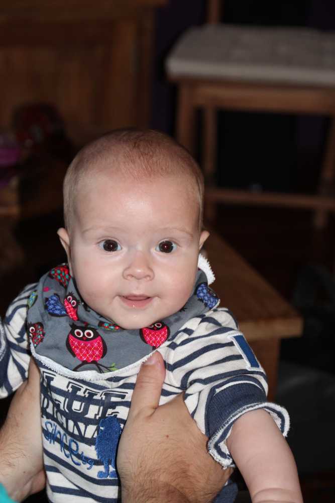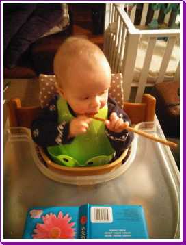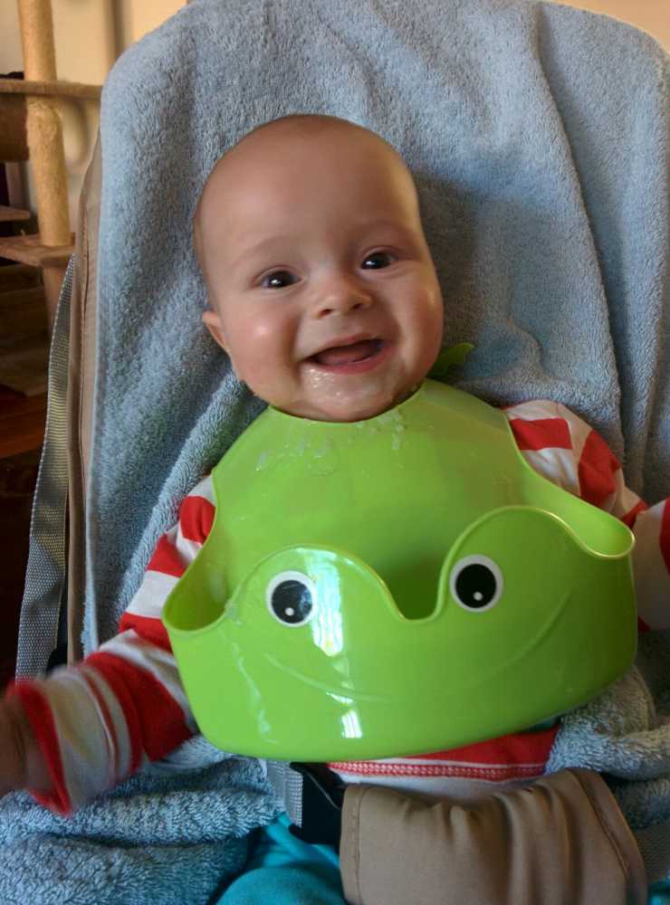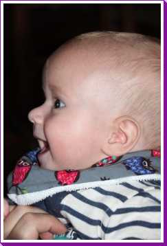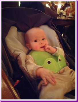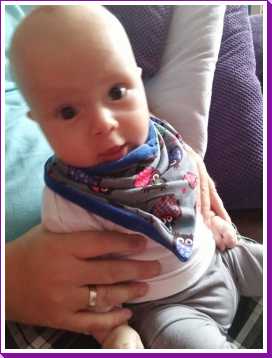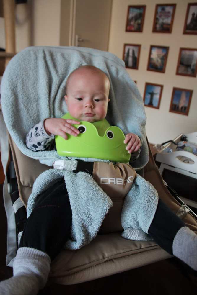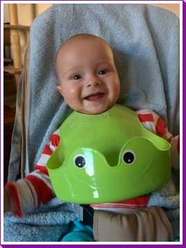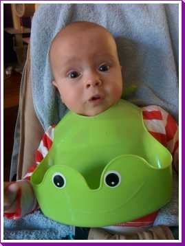 30 september: Papa heeft mij vandaag een nieuwe slabber omgedaan om mij te voeden, dat is even wennen maar ik ben toch al snel weer overtuigd.....