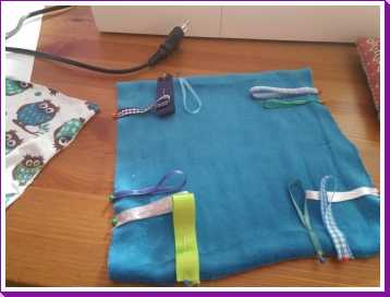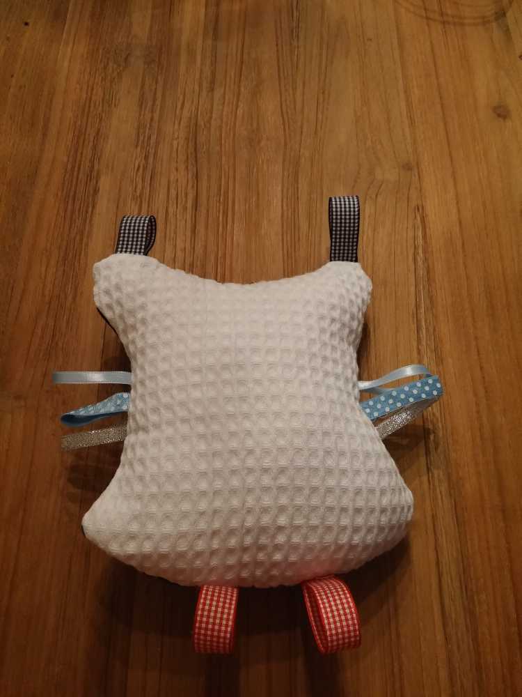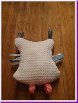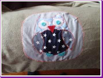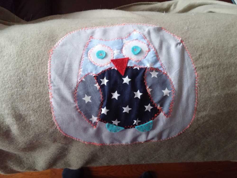 3 september: Mama heeft de smaak te pakken met het naaien van uiltjes. Er werd dus weer een nieuw uiltje in elkaar geknutseld, ditmaal om op de plaid te naaien voor over de box. Zo kunnen papa en mama zien wat boven en onder is omdat Poekie & Gizmo 's-nachts ook in mijn box gaan slapen en ik niet in de haren wil liggen. Morgen zou hij af zijn.