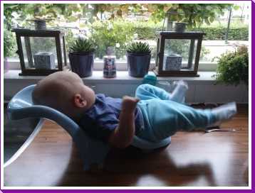 13 augustus: Nu ik een beetje begin te begrijpen dat die dingen die aan mijn romp vast zitten ook van mij zijn en ik daar schijnbaar ook de controle over kan krijgen, ben ik nu dus aan het oefenen om een rammelaar vast te houden. Mijn ouders denken dat ik gek ben dat ik dat doe, ik ga toch niet mezelf liggen entertainen, daar hen ik hen juist voor.......