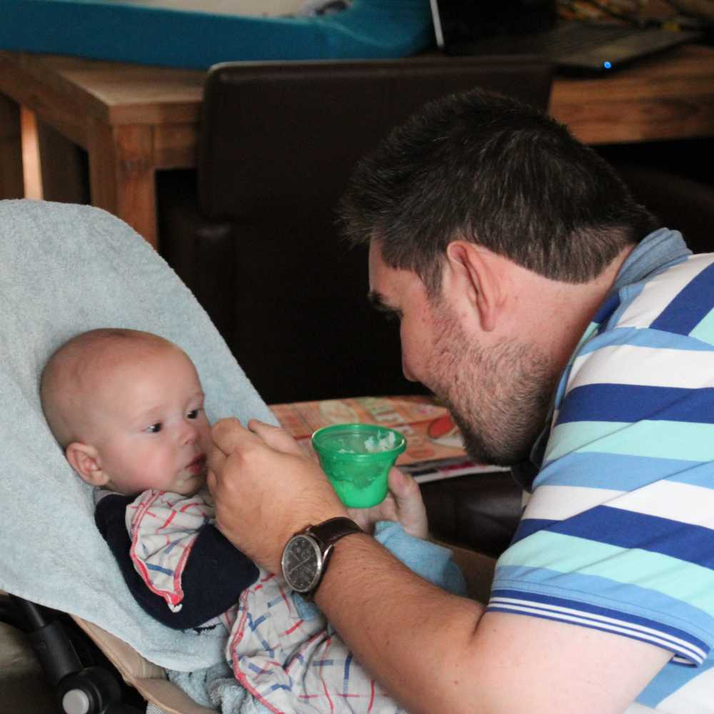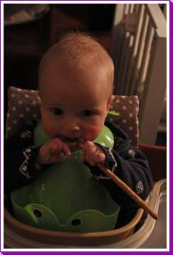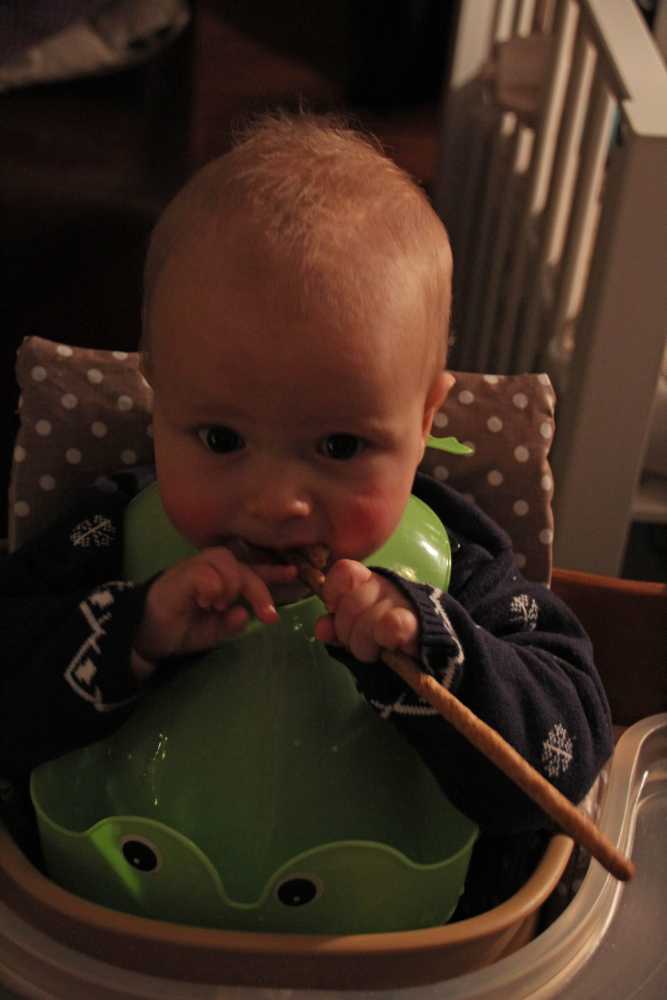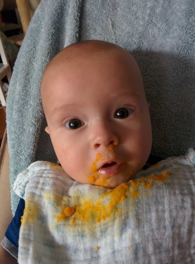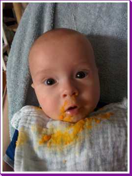 Aan het einde van ochtend heb ik vandaag voor het eerst worteltjes uit een potje gegeten. Normaal krijg ik verse worteltjes die papa en mama zelf gestoomd en gepureerd hebben, maar aangezien we binnenkort op vakantie gaan moet ik deze ook leren eten omdat de verse niet mee kunnen.