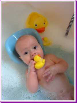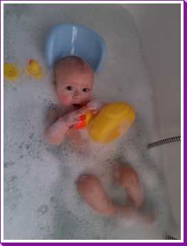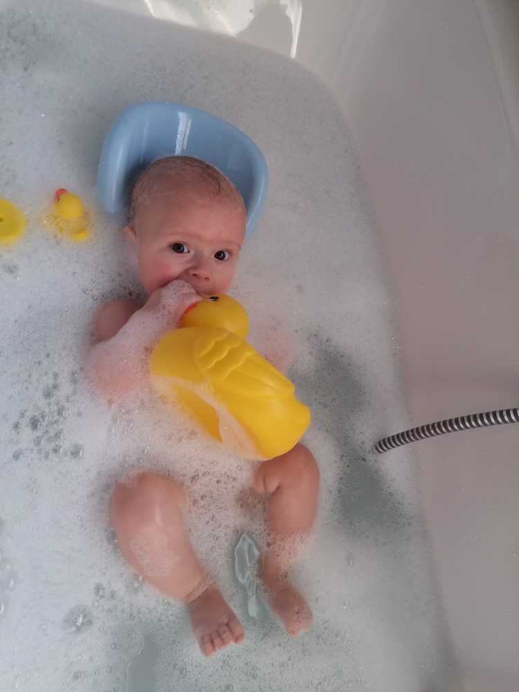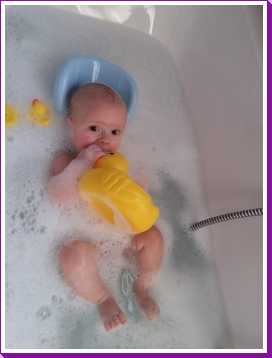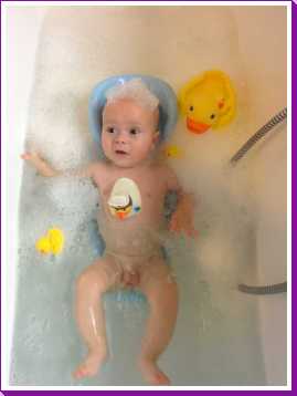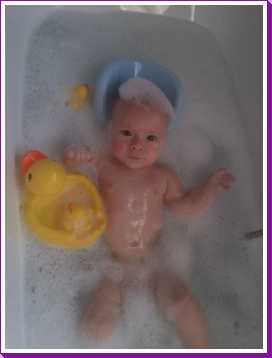 31 oktober: Vandaag ben ik in plaats van te douchen met mama weer eens lekker in bad geweest. Flink wat schuim daar houd ik wel van, en die eendjes vind ik ook wel leuk.
