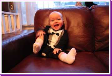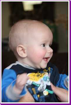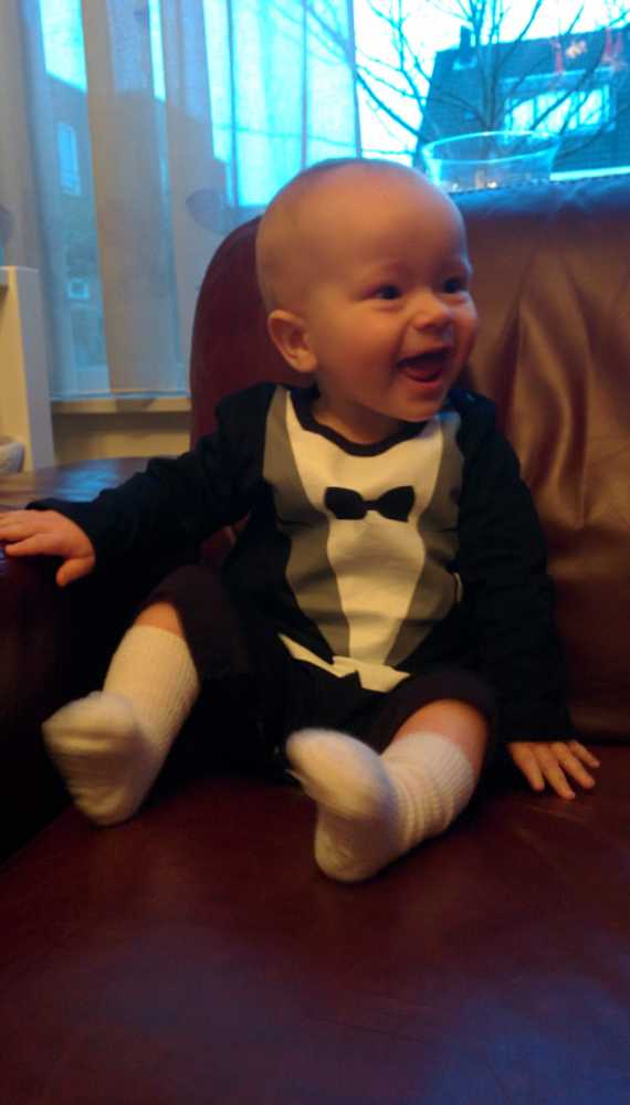 11 oktober: Vanochtend heb ik even leuk 'hop paardje hop' gespeeld op de knie van papa. Ik vind dat wel een leuk spelletje.