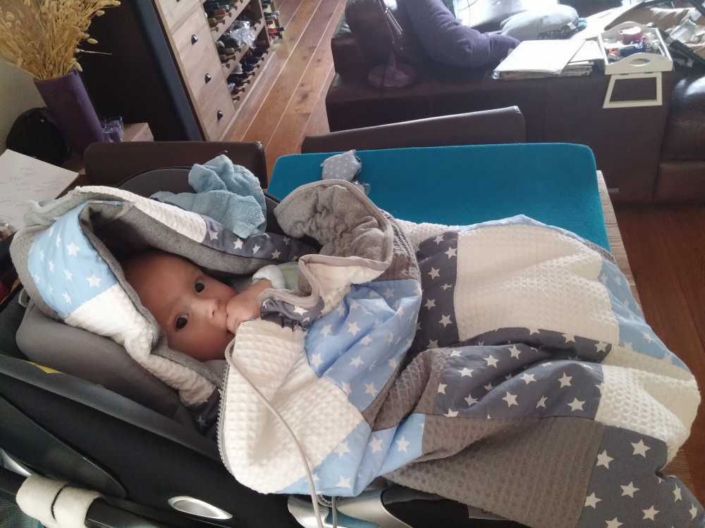 19 mei: Vanochtend is de kraamhulp langsgeweest voor de hielprik. Ondertussen was Erik naar de praktijk en boodschappen doen. Al met al een redelijk rustige dag.