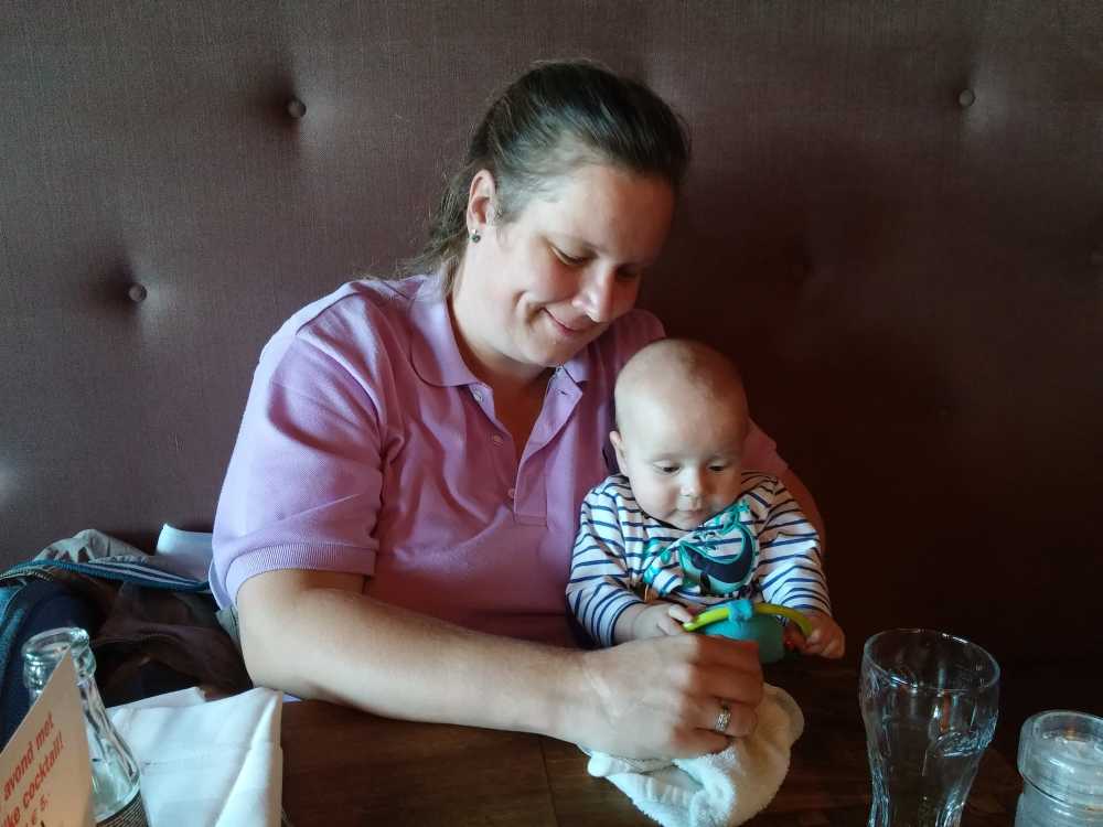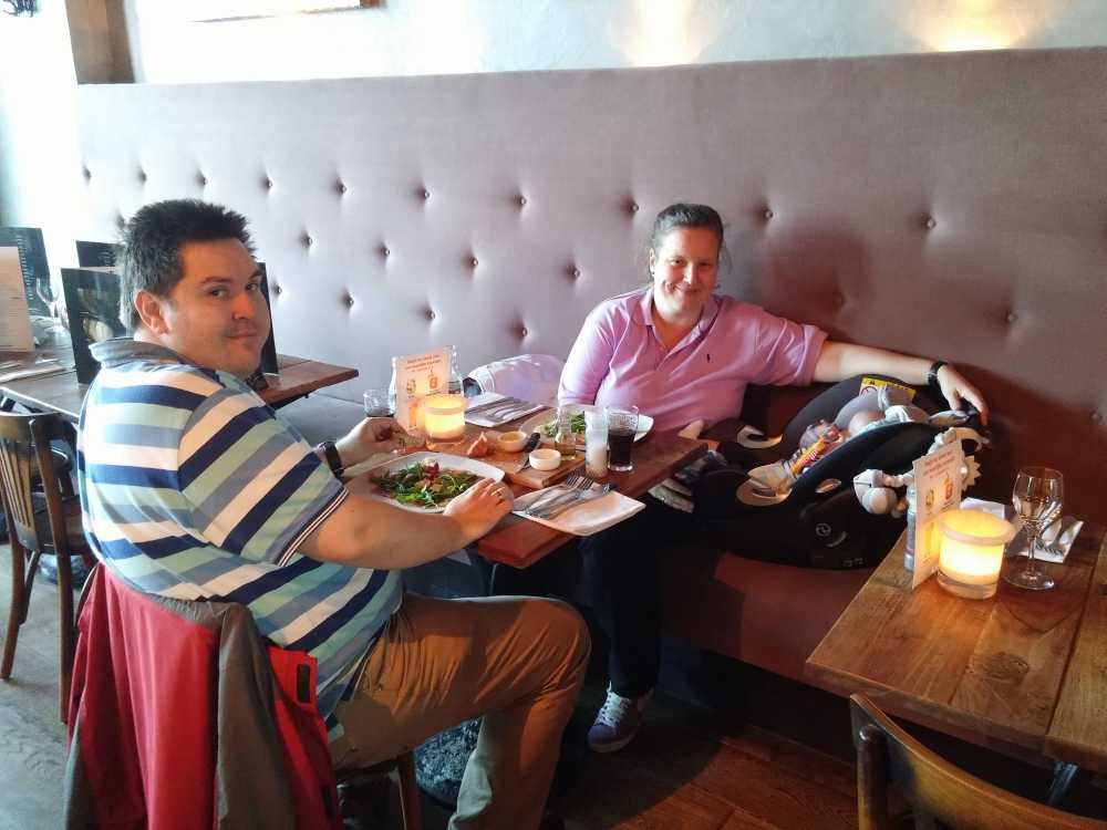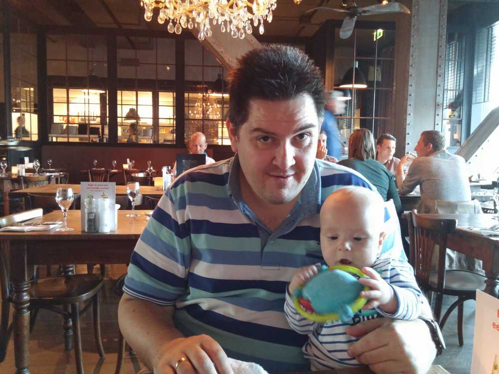 1 augustus: Vanochtend zijn we bij Frank & Aletta Paalvast op kraamvisite geweest. Zij hebben ook een zoon gekregen met de naam Jens, maar wel als derde kind. We besloten ook nog even samen te gaan lunchen. Mijn melk werd in het restaurant niet 30 seconden in de magnetron gezet maar een paar minuten. Die kwam dus kokend heet terug en moesten we terug koelen met ijsblokjes voordat ik die kon drinken.