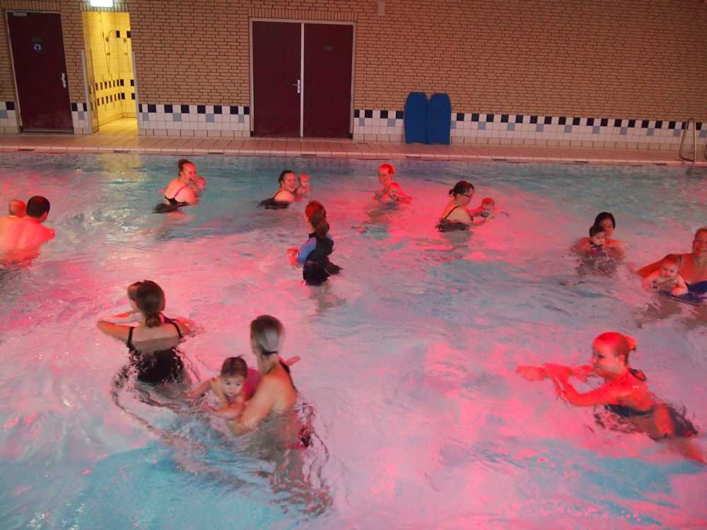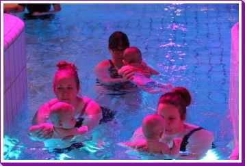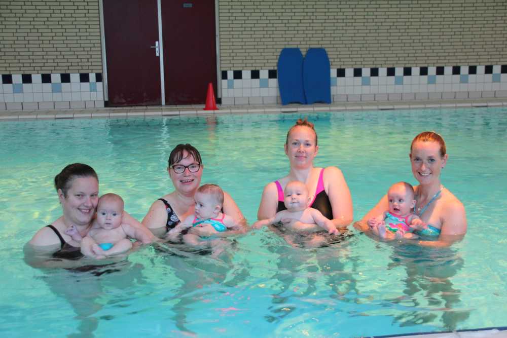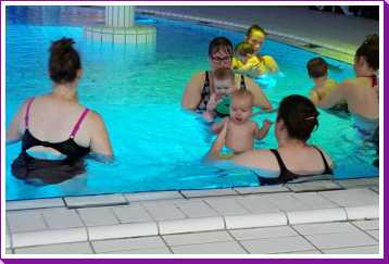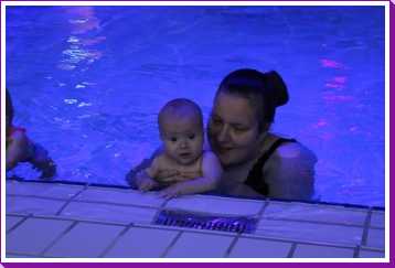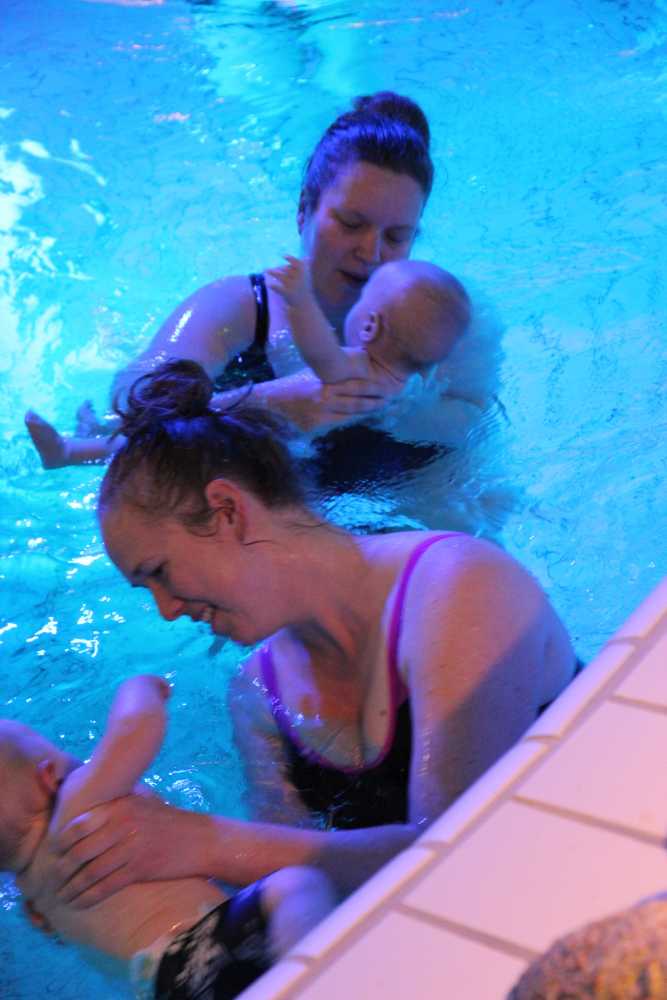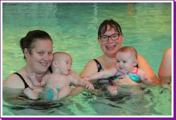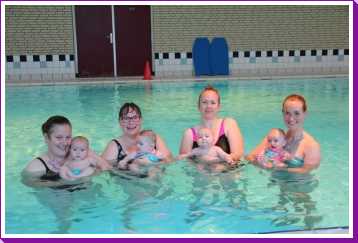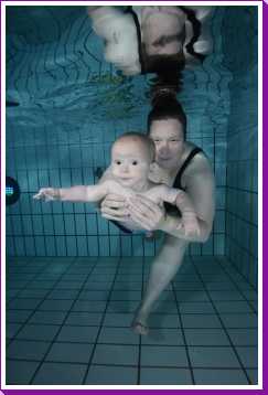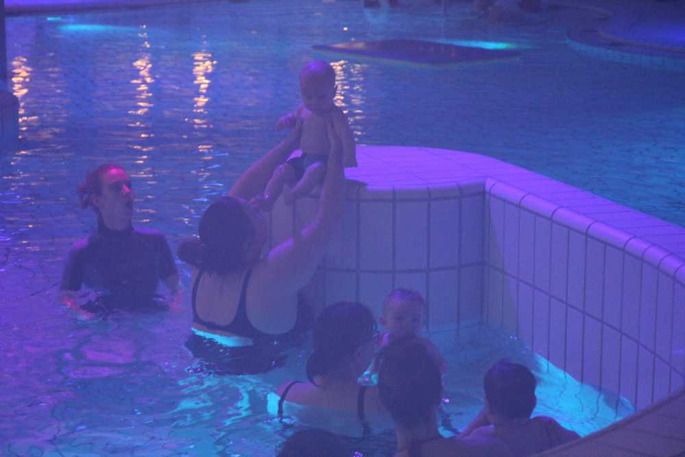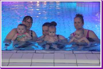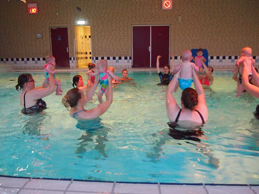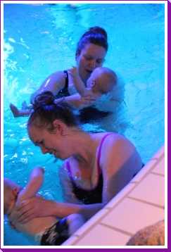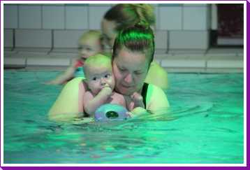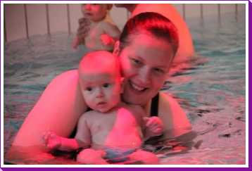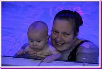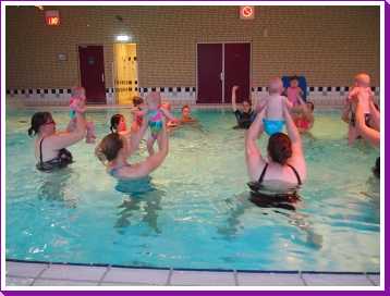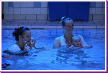 6 oktober: Vandaag was er weer de wekelijkse zwemles met mama. Ditmaal was ook de camera een keer mee en werden er dus een flink aantal foto's van ons zwemclubje gemaakt. Zo kunnen jullie zien dat ik het op zich wel best vind maar ik sta nog niet te springen......