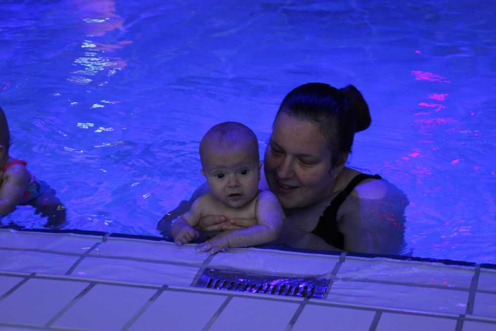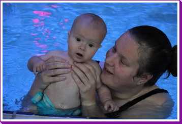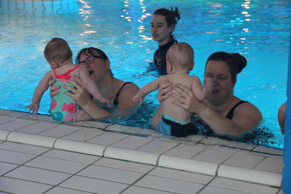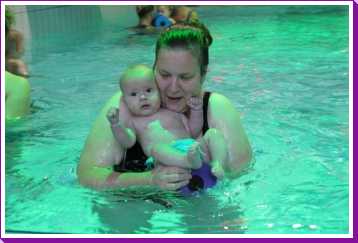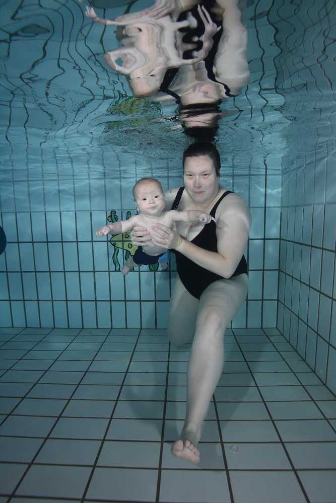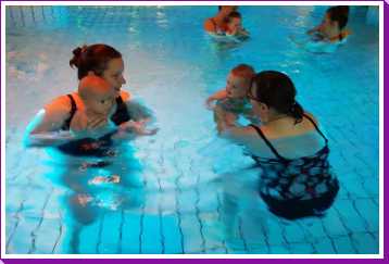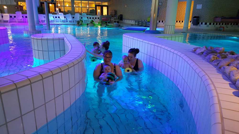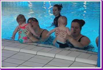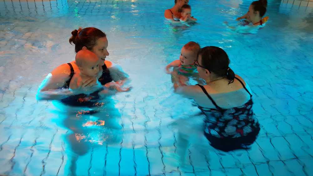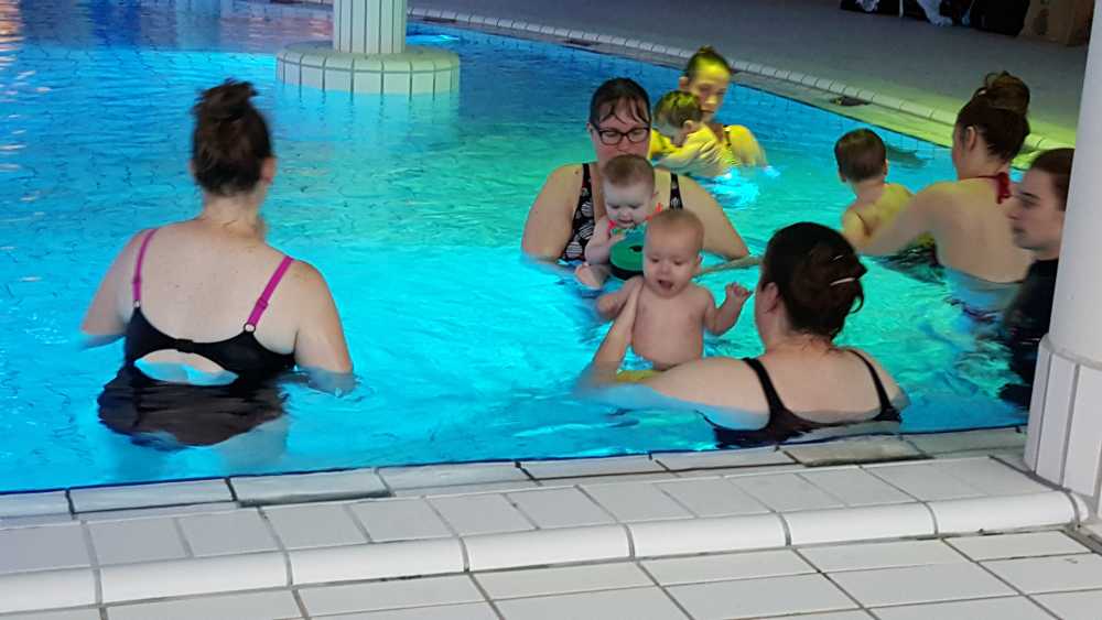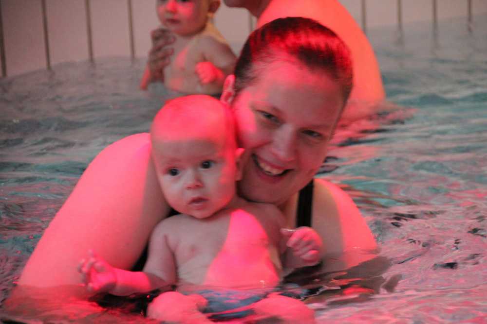 6 oktober: Vandaag was er weer de wekelijkse zwemles met mama. Ditmaal was ook de camera een keer mee en werden er dus een flink aantal foto's van ons zwemclubje gemaakt. Zo kunnen jullie zien dat ik het op zich wel best vind maar ik sta nog niet te springen......