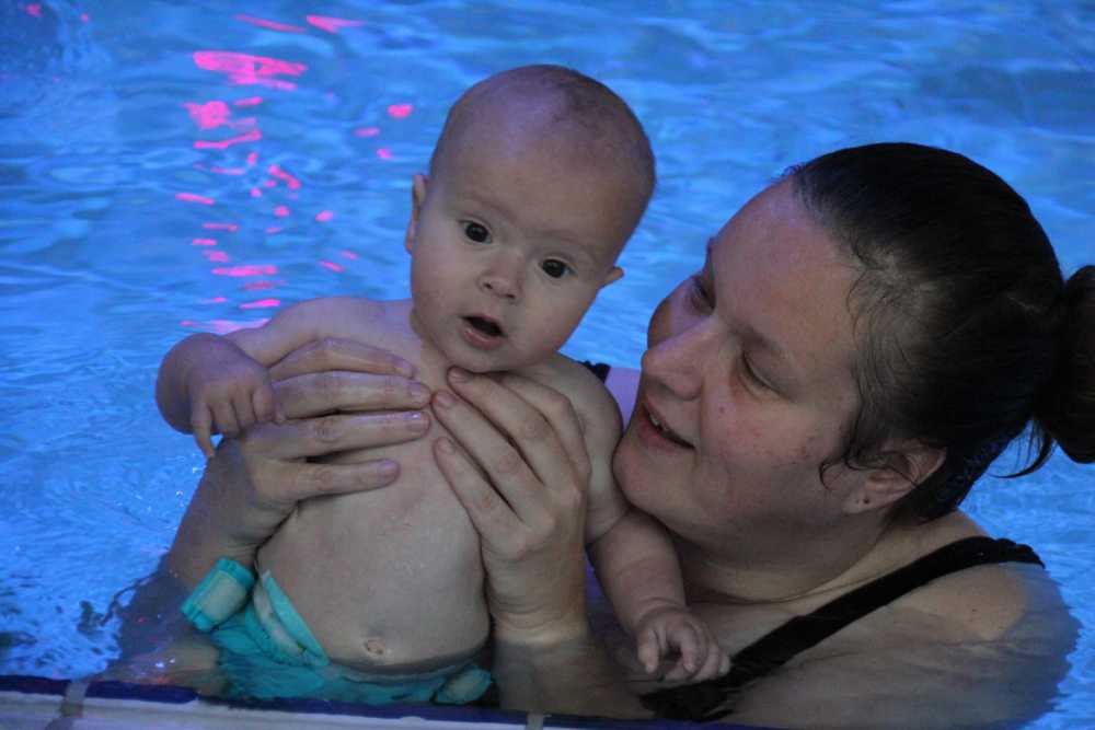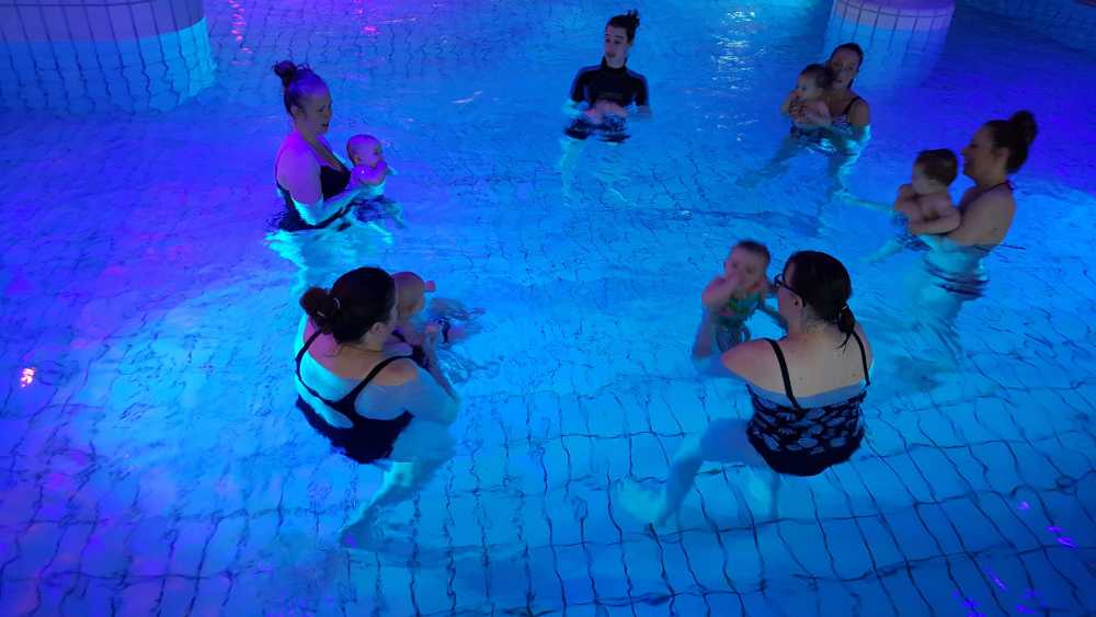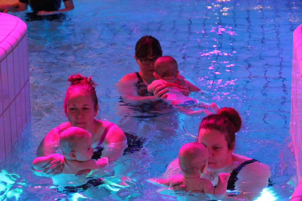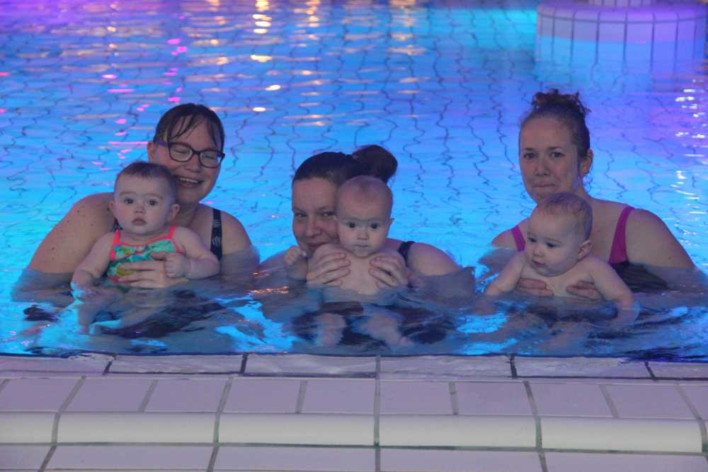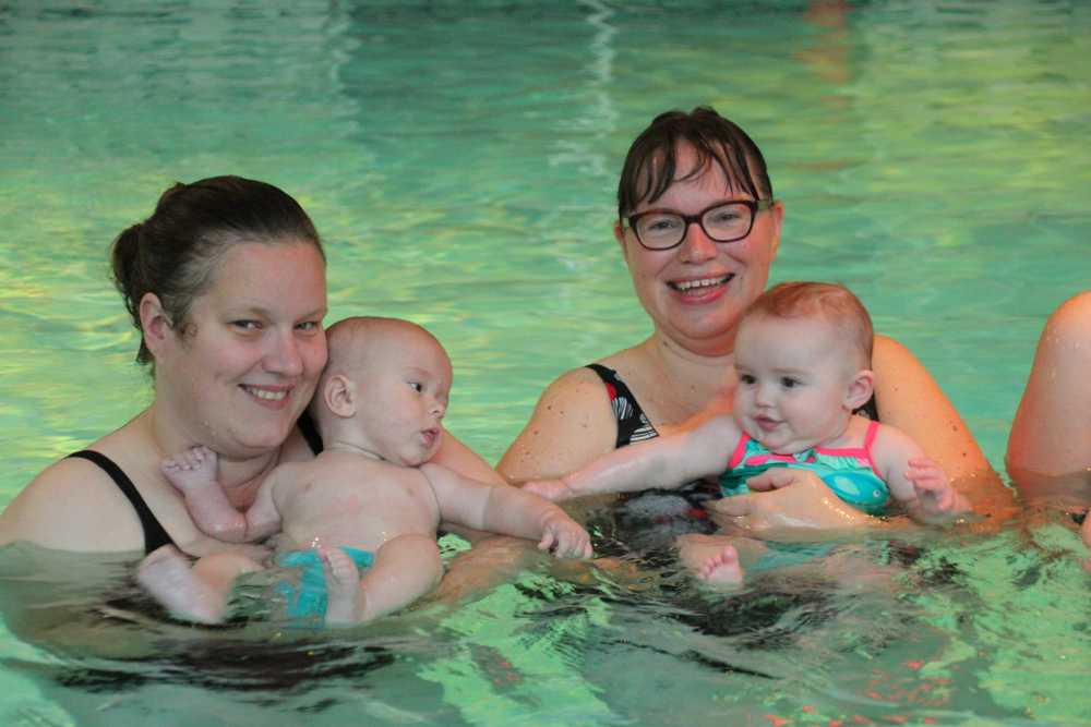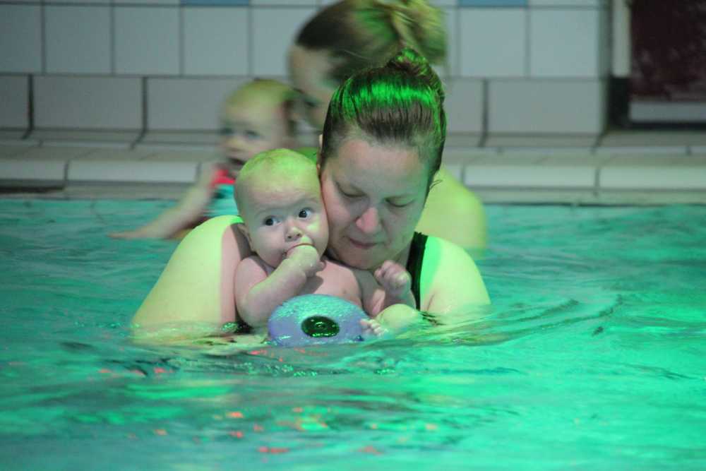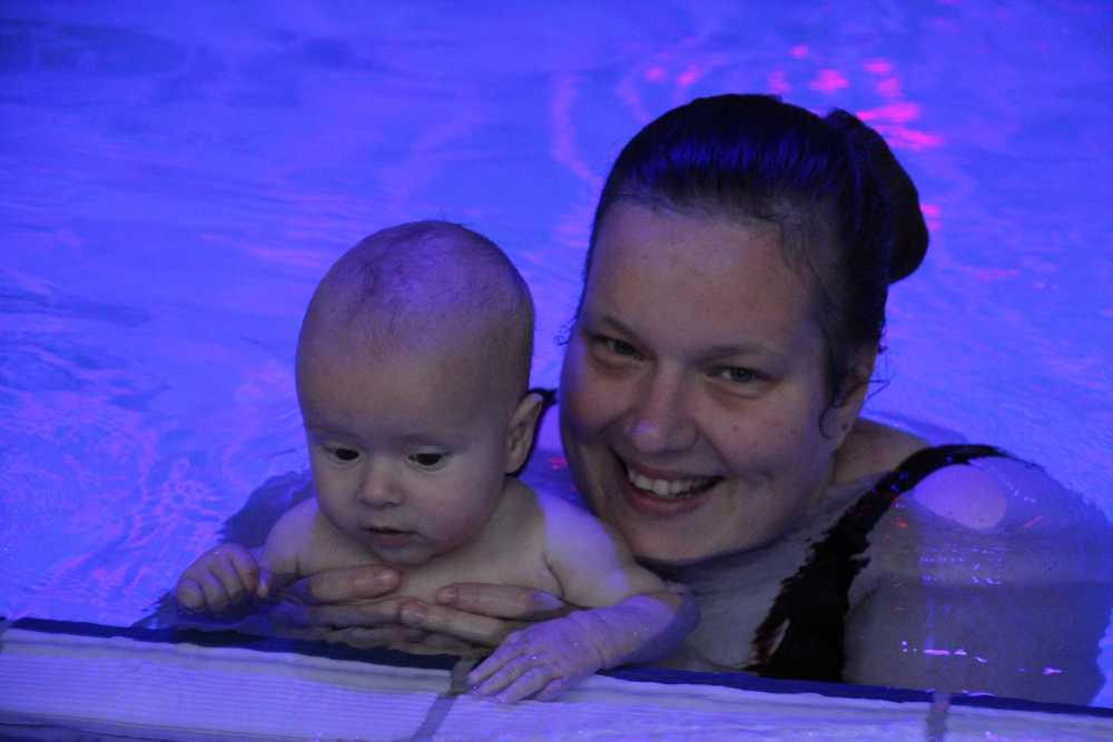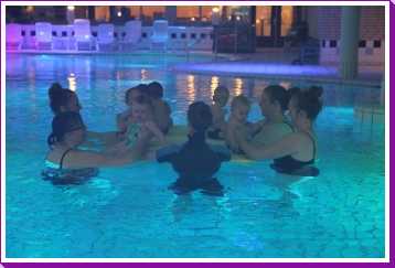 6 oktober: Vandaag was er weer de wekelijkse zwemles met mama. Ditmaal was ook de camera een keer mee en werden er dus een flink aantal foto's van ons zwemclubje gemaakt. Zo kunnen jullie zien dat ik het op zich wel best vind maar ik sta nog niet te springen......