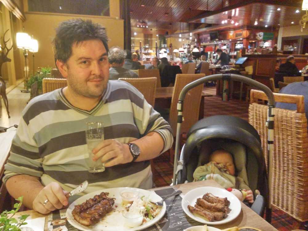 Na Almere reden we door naar het hotel in Joure, en daar kreeg ik dan direct op de kamer ook weer lekker de fles. Nadat ik mijn eten op had gingen we naar het restaurant zodat ook papa en mama konden eten. Na het eten hebben we nog even gewandeld naar de McDonalds voor een toetje.