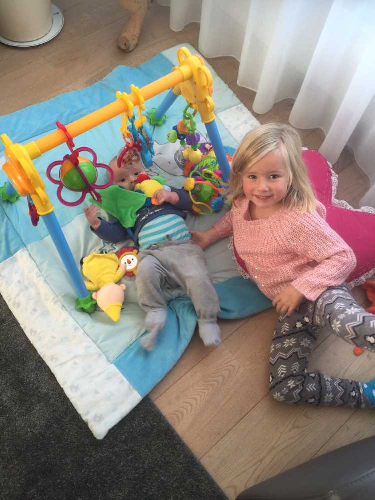 2 november: Vandaag heb ik bij opa en oma thuis even op het speelkleed gespeeld samen met mijn nichtje Puck.