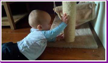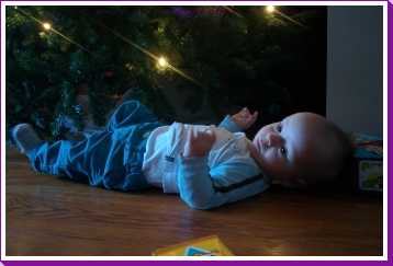 2 december: Dat kruipen wil nog maar niet lukken. Ik draai wel om mijn eigen as en kom zo ook naast mijn speelkleed terecht. Daar vind ik dan o.a. de krabpaal van mijn vriendjes Poekie en Gizmo. Ik heb gezien dat je daar je nagels kan vijlen dus dat moest ik natuurlijk ook even proberen. Daarna ben ik met papa sinterklaasmuziek gaan luisten vanuit de box zodat ik op de maat mee kon spartelen......