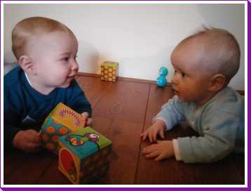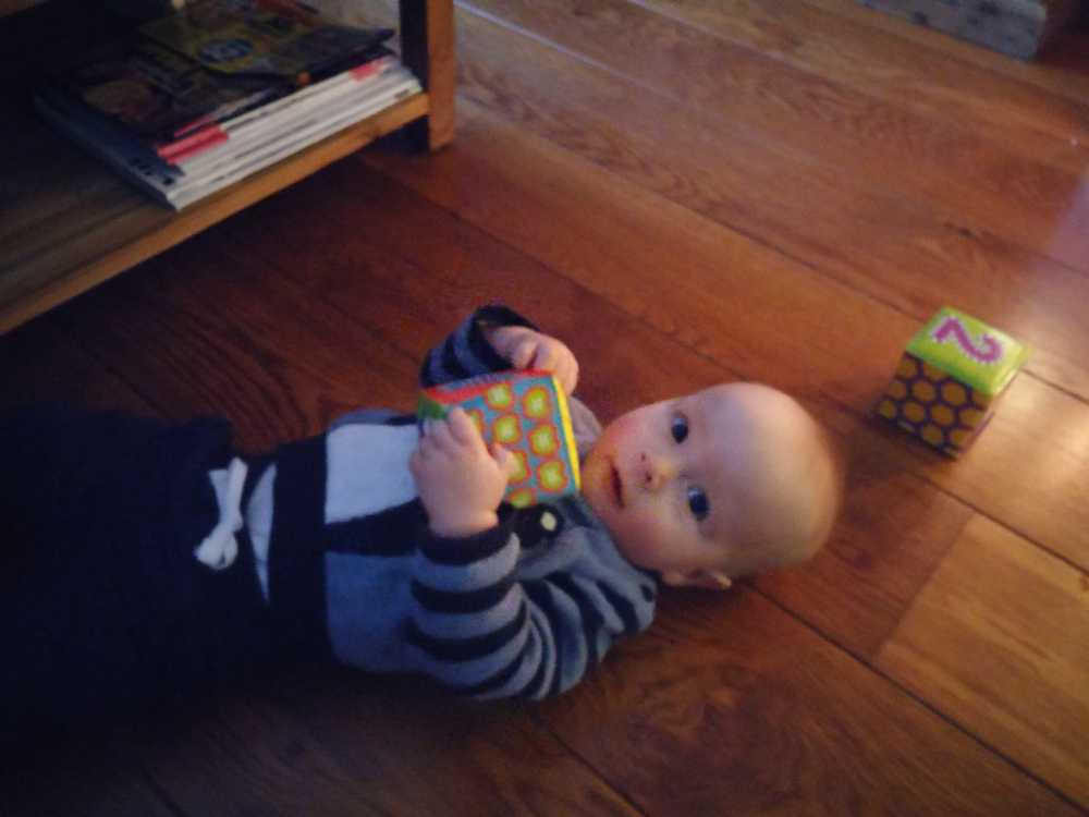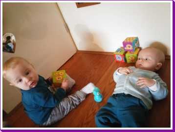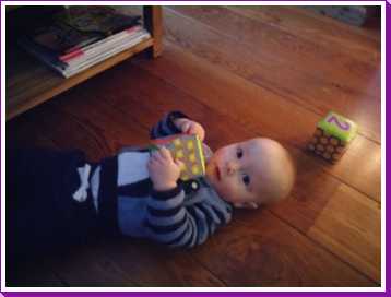 11 december: Vandaag is Bieneke langs geweest met mijn vriendje Lars. Samen met hem heb ik op de grond met mijn blokjes liggen spelen. Maar Lars zat er ook aan, en dat wil ik eigenlijk helemaal niet. Als er iemand op die blokjes kwijlt ben ik het........