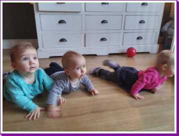 's-middags had mama weer afgesproken met de meiden van de pufclub en dus lag ik weer met alle andere baby's bij elkaar in die kippenren......