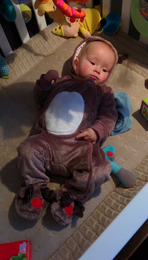 25 september: Ik ben vandaag met mama bij opa en oma geweest waar ook tante Marlou en nichtje Puk waren. Eenmaal terug thuis ben ik tijdens mijn middagtukje rondjes gaan draaien en kwam ik bijna klem te zitten in mijn bed. Gelukkig kon ik er achteraf weer om lachen........